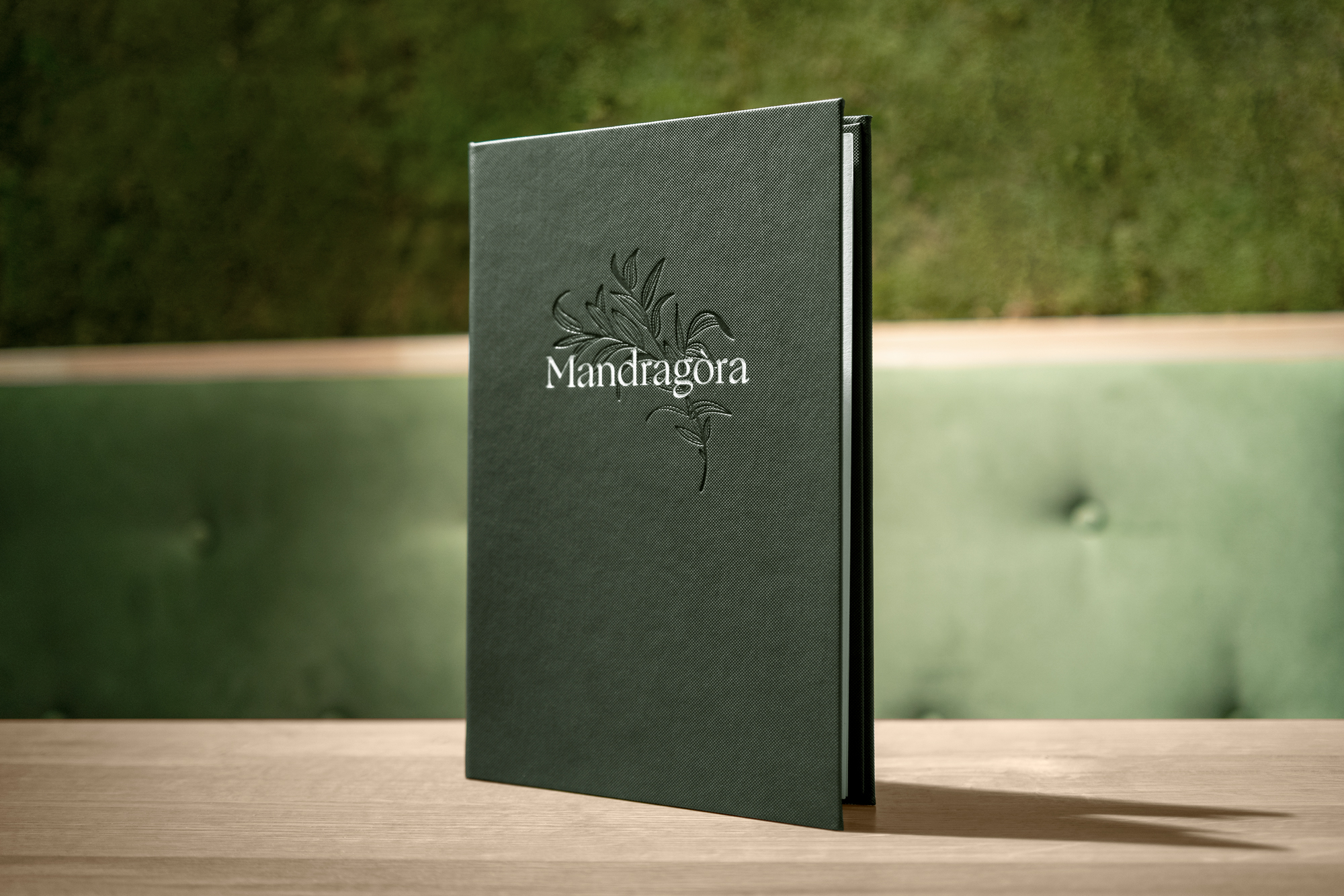 The restaurant recently went through a major remodeling and the new visual identity was created along with renovations in the interior and kitchen. The branding and the interior design take their inspiration from the restaurant’s name Mandragòra (Mandrake) using botanical elements, hand-drawn gestures, and a green color scheme to set the tone for a mysterious experience. Inspired by the magical plant, the identity aims to capture a unique mix of Ogg Display’s calligraphic and typographic forms complemented with a natural motif in perfect harmony. With developing the new design concept, the goal was to embrace the restaurant’s new atmosphere and create an unforgettable experience that engages not just our taste, but all of the senses.