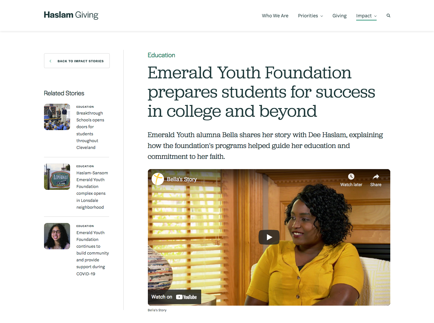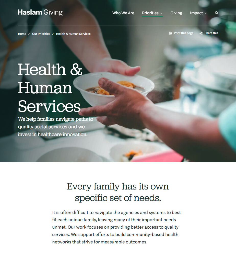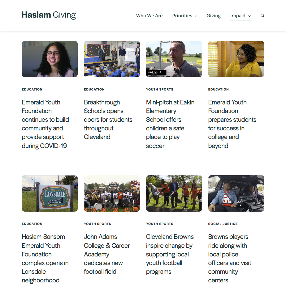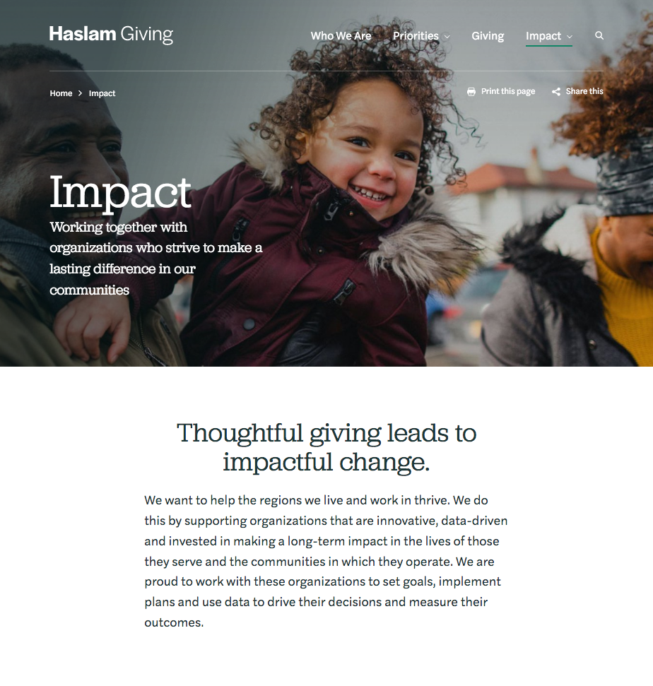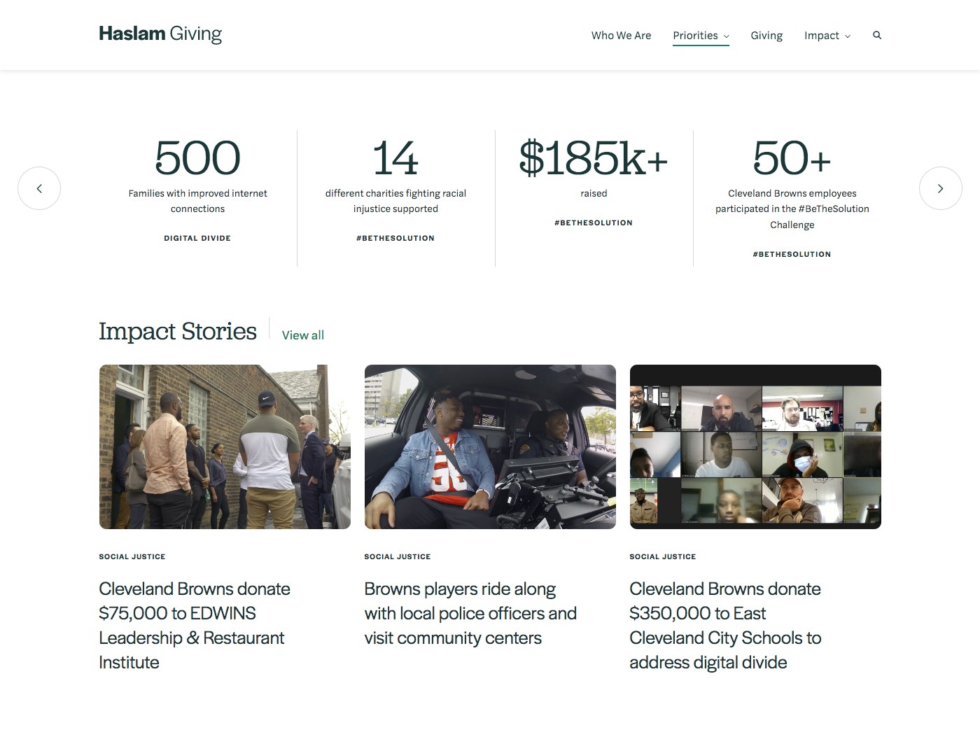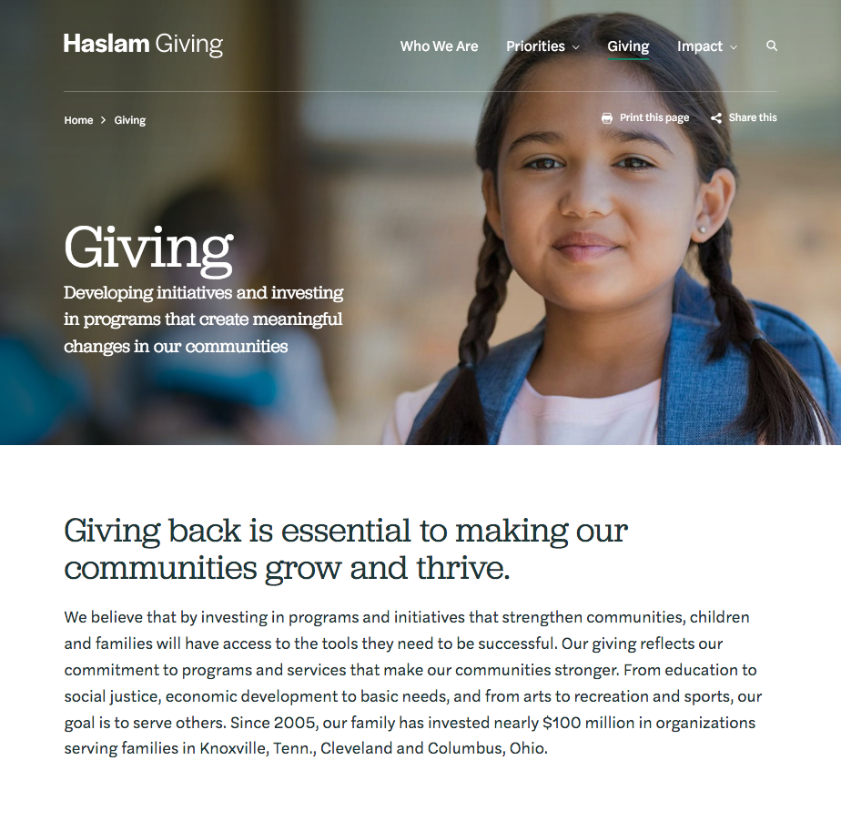 The visual identity of Haslam Giving brings together two typeface families by Darden Studio, Jubilat and Halyard. Haslam Giving is one branch of the philantropic initiatives of the Haslam Family Foundation, committed to helping children and families. Cleveland-based agency Form designed a new identity and website.