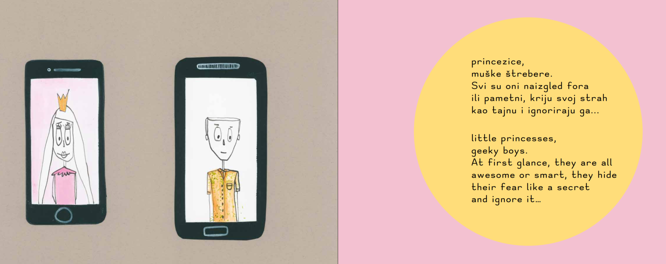 To support and empower children to communicate their fears, Omoguru has published a picture book called Čovječuljci / Tiny people. The story by Ula Reić is about fears that live inside everyone’s minds and grow bigger until we speak about them. The texts are adapted for children with dyslexia and other reading difficulties, and set in our dyslexia-friendly font Omotype Sans. The amazing dreamy illustrations were drawn by Ivana Radić.
