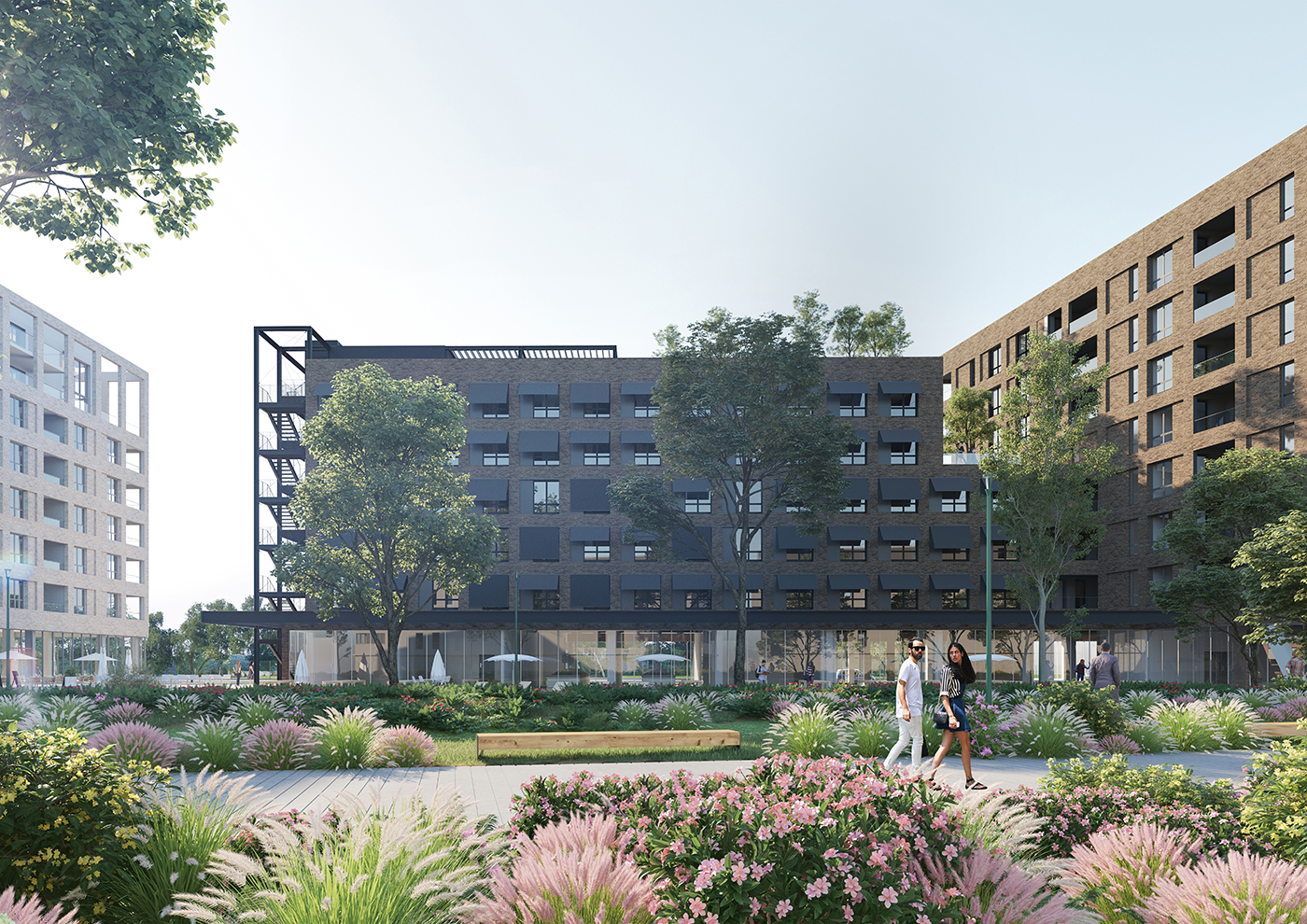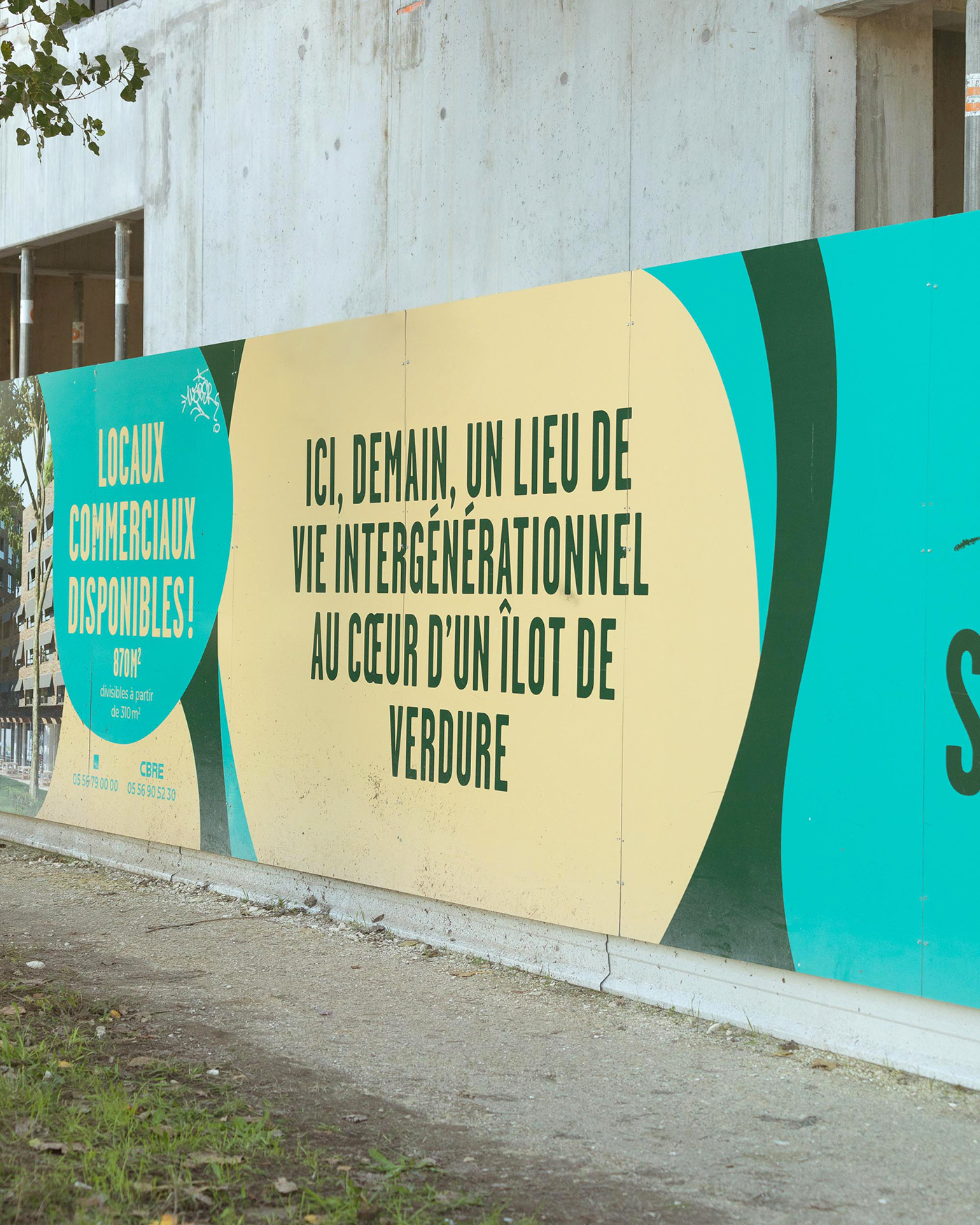 In the context of the building of a new block in northern Bordeaux, France, land developer Nhood and Linkcity worked on a project mixing green spaces and residences with the collective willingness of mixing people through federative activities. The project is articulated around current willingness towards environmental issues. With the aid of deux degrés agency, we have developed a lively and flexible identity to represent the project but also to allow the inhabitants to identify themselves to their new living place.