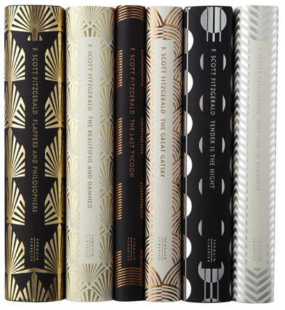 I designed the patterns in an attempt to give these books something of the elegance and glamour of the art deco period, with the sense of ornate detail fused with the modernist aesthetic of mechanical repetition. The combination of metallic foil and matt paper is designed to feel good in the hand as well as look good on the shelf; by evoking the jazz age of Fitzgerald’s stories, I hope these books will give a little tactile enhancement to the reading experience. — Coralie Bickford-Smith