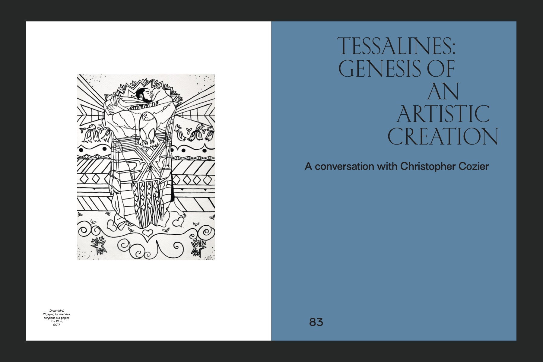 Paris-based studio Maison Solide took care of the book design and chose to work with Kessler from Production Type. This family by Alaric Garnier is available in three optical sizes. While titles on the cover and for the chapters use capitals from the sharp Super Display style, the body copy is set in the sturdier Kessler Text. There, the designers harnessed much of the potential of the family: from the Italic – which is a modified sloped roman, with cursive elements for unseriffed glyphs – to oldstyle figures and small caps. Kessler is supported by the sans-serif Surt by Blaze Type which is used to set captions and marginal notes.