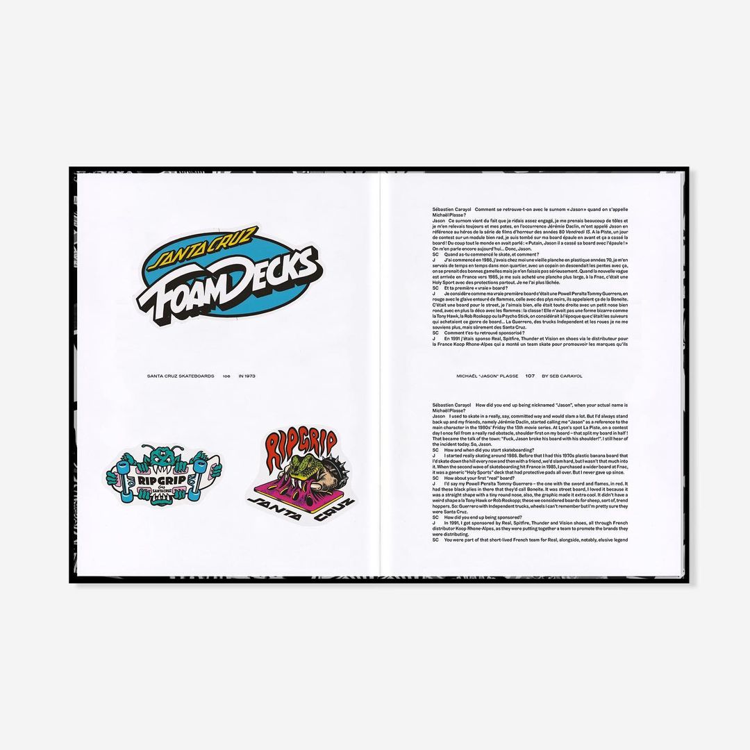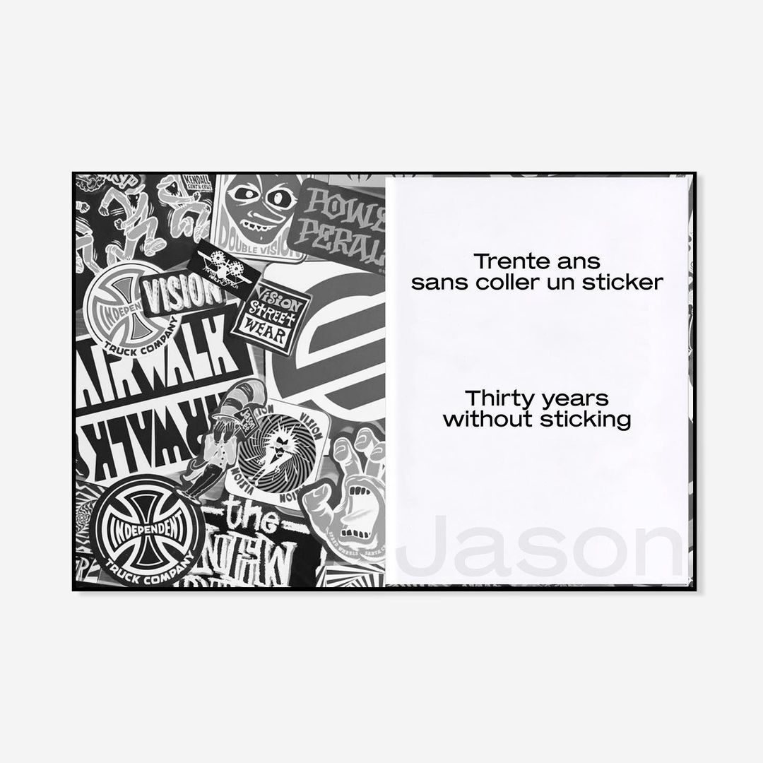 Jason is a book displaying the collection of skateboarding stickers of Michaël Jason Plasse who spent thirty years collecting these objects without ever sticking them. Owner of a skate shop in Lyon, France, Plasse has gathered a collection of more than 5,000 stickers from both famous and obscure brands, from which a selection has made it into the book. Jason is an homage to skate culture, where graphic design works at valorizing a field considered too long as “alternative“ and not to be seen under an aesthetic lens.