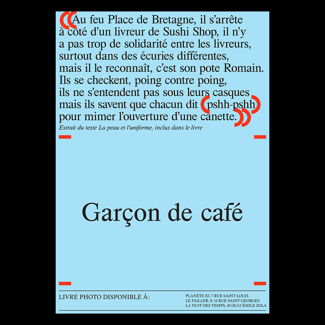 This series of posters was conceived for the book launch of Garçon de Café, a publication gathering portraits of young students in their job uniforms.