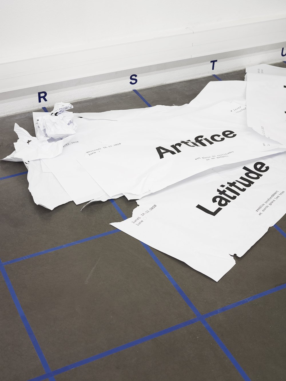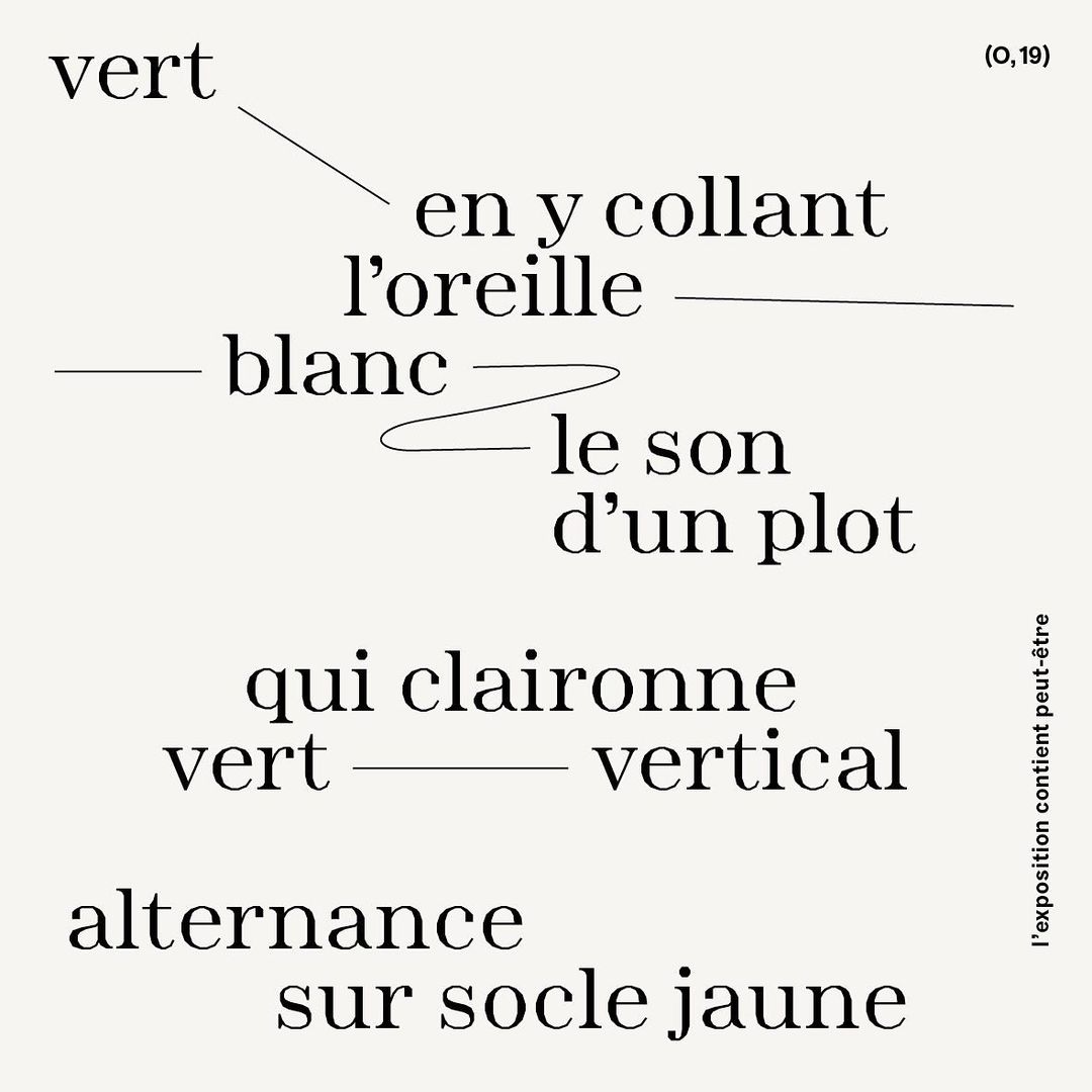 How to talk about an exhibition that can’t be visited? This is the question that Sophie Cure tries to answer regarding the exhibition of her work, Les champs sémantiques, the result of a residency at the art centre Le Bel Ordinaire in Pau, France. The exhibition was supposed to open on the 8th December 2020; the sanitary conditions drastically limited all related events, from guided tours and performances to workshops. Refusing the evidence of taking the exhibition “online”, Sophie Cure invited the poet Julien Van Anholt to capture some “lexical shots” of the exhibition, entitled “The exhibition contains maybe”. These poetic interpretations in a hundred signs aim at giving clues of what is exhibited, while keeping the mystery of the locked place: it is also a way of not showing, refusing to make accessible online what has to be experienced physically.