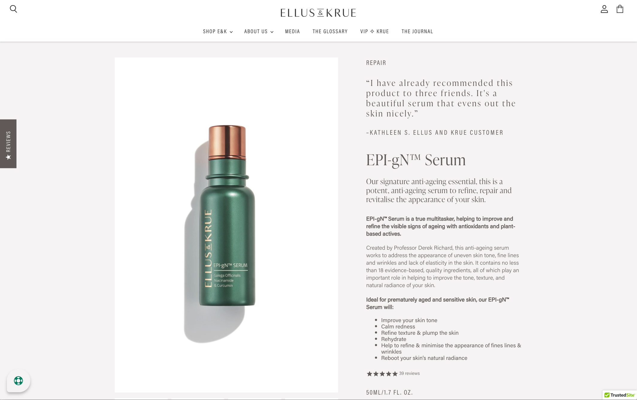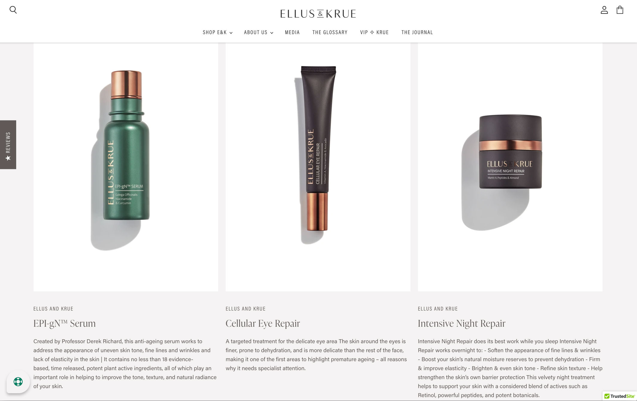 Ellus & Krue is an Australian-made range of anti-ageing skincare, inspired by nature and informed by science. Pioneering research into ageing by Professor Derek Richard and the Cancer & Ageing Research Foundation remains their guiding light.