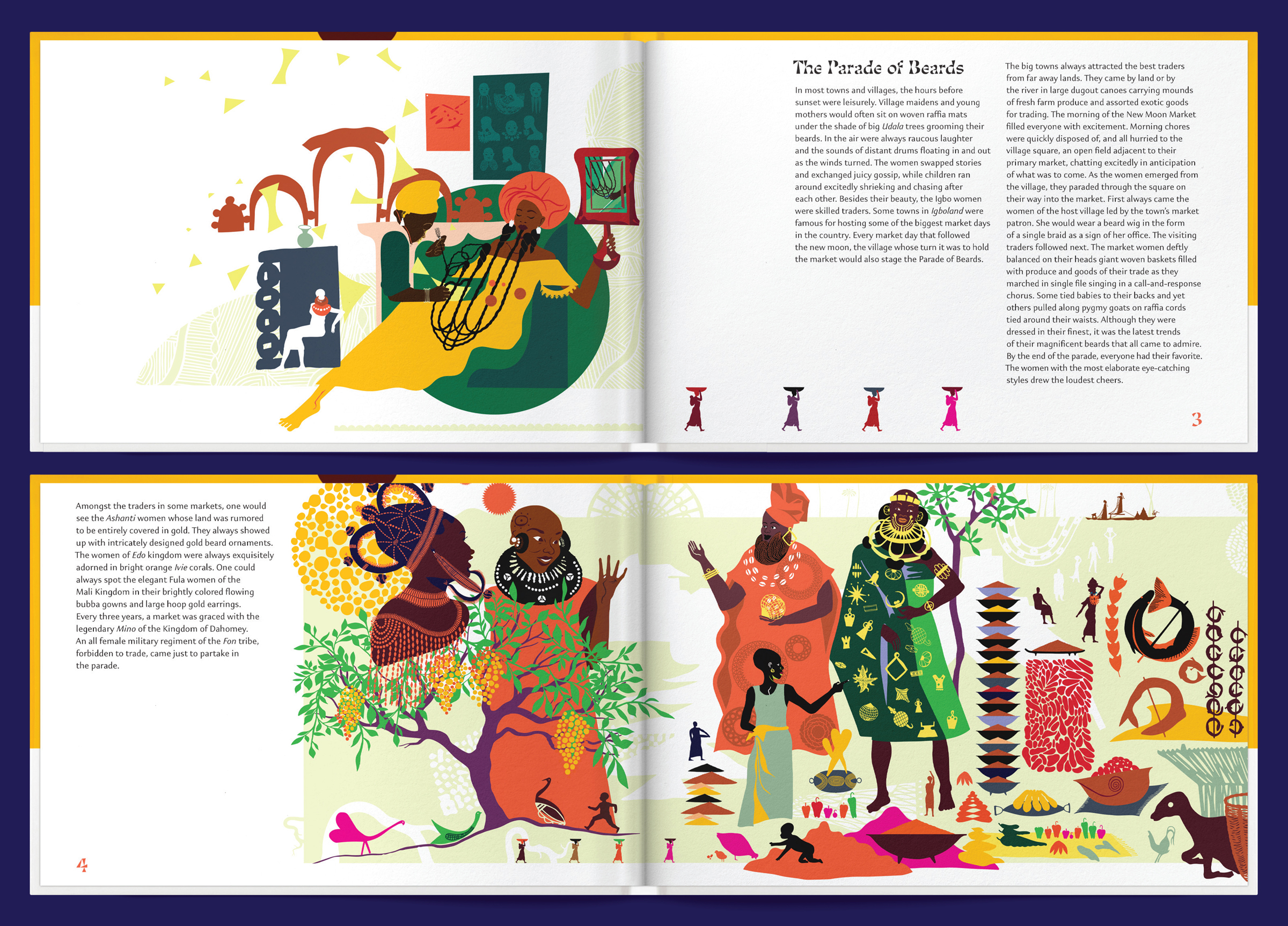 Nkemdiche, an Igbo term that translates to “mine is different”, is set in Minérale, a shapely typeface from 205TF that reflects the unique and creative qualities Nkemdiche was known for in her beard styling. The body text of the book is set in Kigelia from Jamra Patel. Kigelia is “the first-ever system of fonts designed to coordinate in character the most prominent writing systems in Africa”. Begun in 2014, this typeface was designed by Mark Jamra and Neil Patel from in-depth research and consultation with script and language experts, both inside and outside the respective language communities that use these scripts.