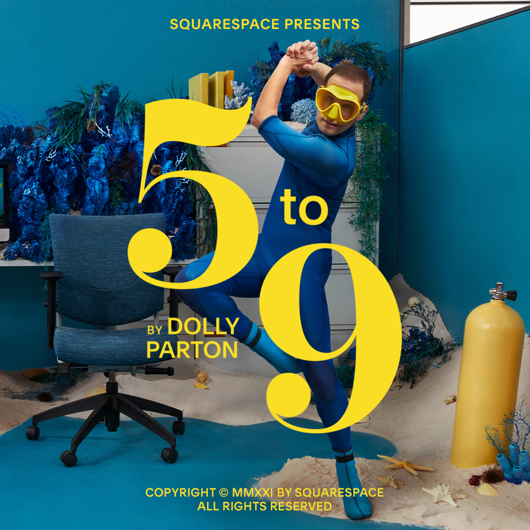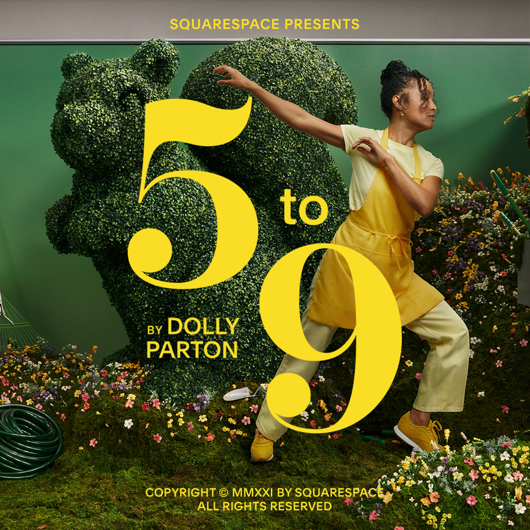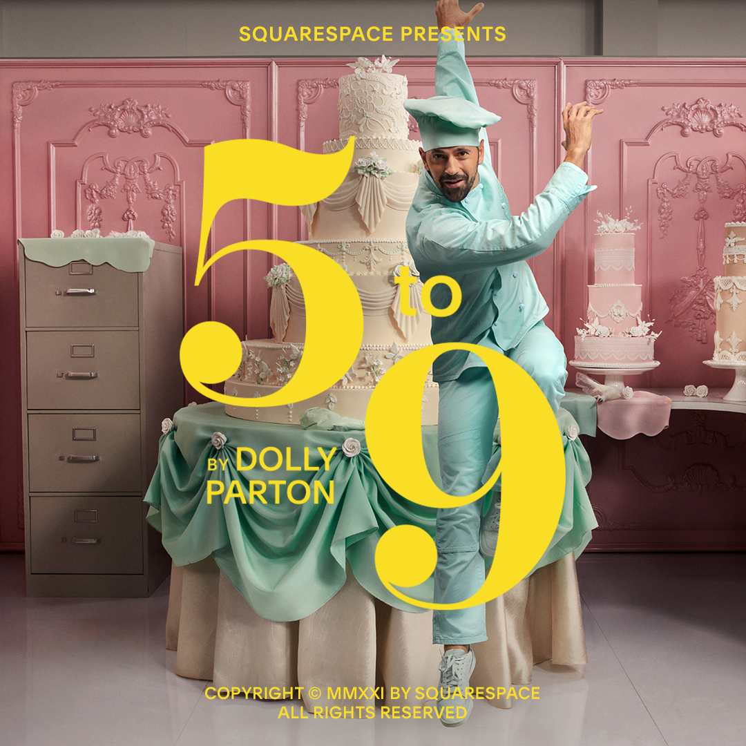 Dolly Parton re-writing the famous “9 to 5” song from 1980 just for this ad. The commercial aired during the Super Bowl 2021. The full video can be viewed on the Squarespace site. Or watch the long version below.