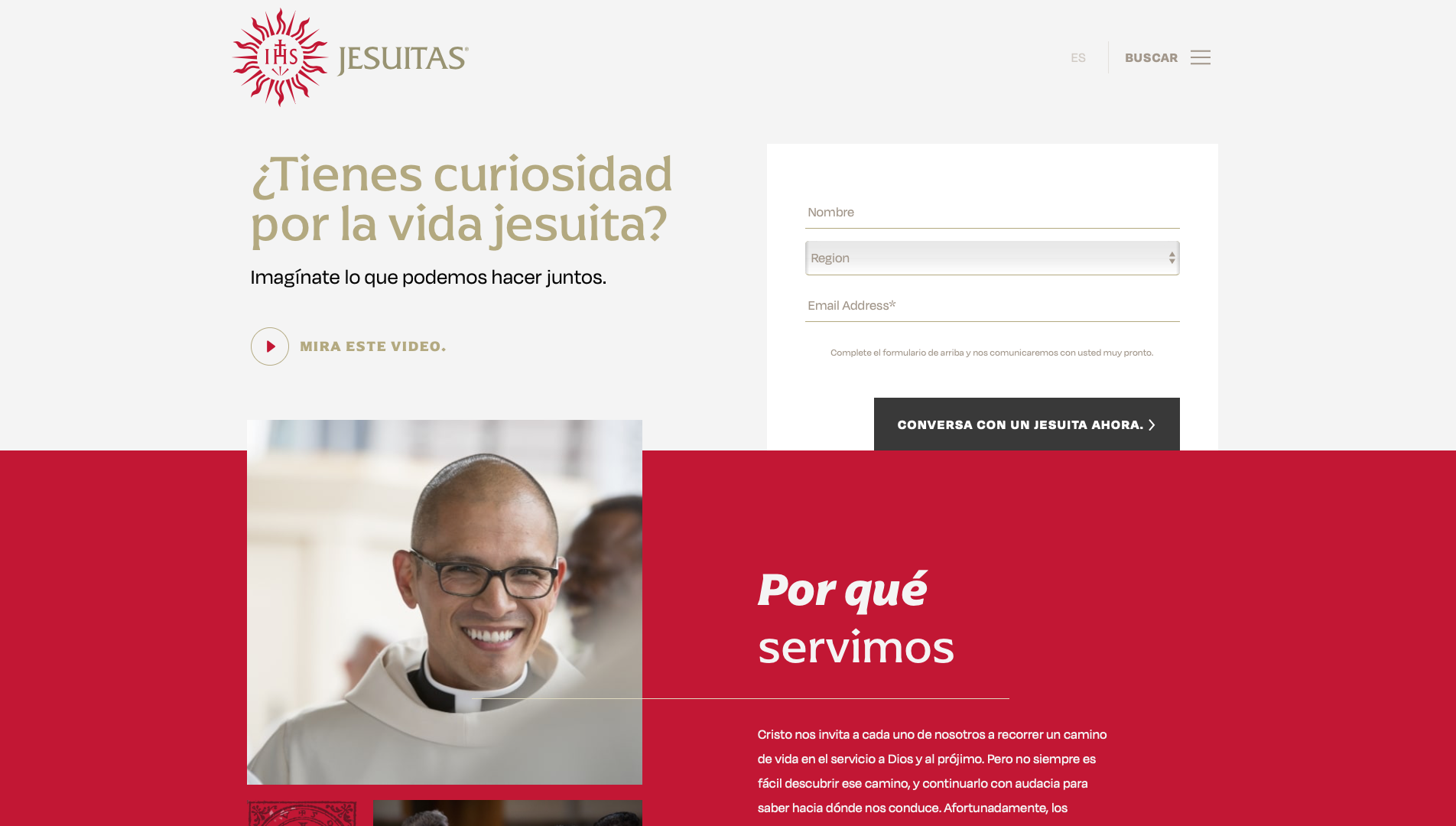 For the design of their new campaign website Be a Jesuit, the society pairs a gold and red palette with portraits and texts set in Degular and Arpona. The wordmark uses Friz Quadrata.