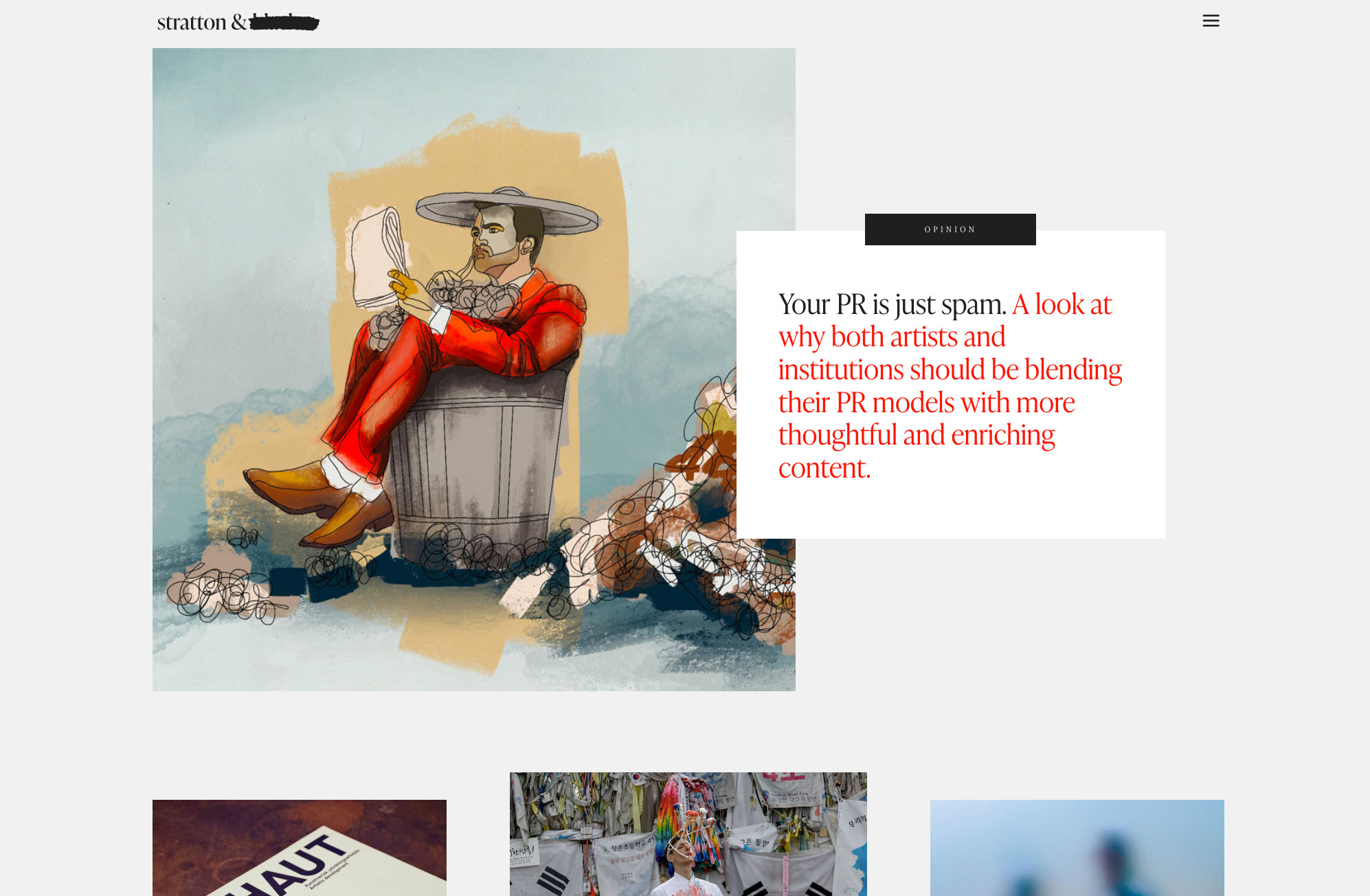 Stratton & Black website Contributed by Jan Maack on Apr 7th, 2021. Artwork published in December 2020. Source: www.strattonandblack.com License: All Rights Reserved. Stratton & Black is a website with artist interviews, performance art and book reviews made by J. Scott Stratton. The website uses IvyPresto Headline and Text for, well headlines and text. Source: www.strattonandblack.com License: All Rights Reserved. License: All Rights Reserved. Source: www.strattonandblack.com License: All Rights Reserved. Source: www.strattonandblack.com License: All Rights Reserved. Source: www.strattonandblack.com License: All Rights Reserved. Typefaces More about IvyPrestoGet IvyPresto Formats Web (5790) Topics Literature (3127) Music (6518) Art (4832) Performing Arts (1030) Designers/Agencies Stratton & Black (1) Tagged withcontemporary art (522)interviews (429)reviews (35)websites (3724)optical sizes (396)one typeface family (1717)redacted (43)red and black (1161)drop caps (456) Artwork location Denmark (235) Copenhagen (145) In SetsFliesstext (Laurin Schuh) (53)TGC - GTM Inspiration (Lara Frayre) (6) Post a comment Name Email – will not be published Website Your response Submit Comment More IvyPresto in use Ellus & Krue skincare website2021Contributed by Jan Maack Anna Rosholt Jewellery2023Digital ButterContributed by Tammy Adendorff Explore the North 20242024BW HContributed by Store Norske Skriftkompani Sponsor More in Literature Ich sitze da, als wäre ich nicht vorhanden, Festival Rümlingen 2021c. 2021Neeser & MüllerContributed by Nouvelle Noire Staff Pick The Diverting History of John Gilpin by William Cowper, Ronald Davis edition1931Ronald DavisJean-Emile LaboureurContributed by Blythwood Staff Pick John Wyndham paperbacks (Coronet)1972Chris FossContributed by Mathieu Triay Oppvekst i Andeby by Audun Briseid1972Peter HaarsContributed by Florian Hardwig Staff Pick More in Web Atlantic Theater Company 2019–20202019PentagramPaula ScherContributed by Richard Baird Staff Pick Axabio2024WeWantMoreContributed by Rodrigo Saiani Koodaric. 2025KoodariContributed by Felipe Casaprima LiveWire brand identityc. 2022ManualContributed by Sharp Type More Fonts In Use Telegraf magazine no. 1, “Ukrainian Design”2021LLIWELLNonna StarushchenkoGlib KaporikovContributed by Svitlana Tolmach (Rentafont) Staff Pick 11 ● Gilgamesh Belleville2017Pierre JeanneauContributed by Pierre Jeanneau Staff Pick S Moda magazine2013Diego AresoContributed by Parachute Staff Pick Himkokc. 2016Tinta StudioContributed by Frode Helland (Monokrom Skriftforlag) Staff Pick