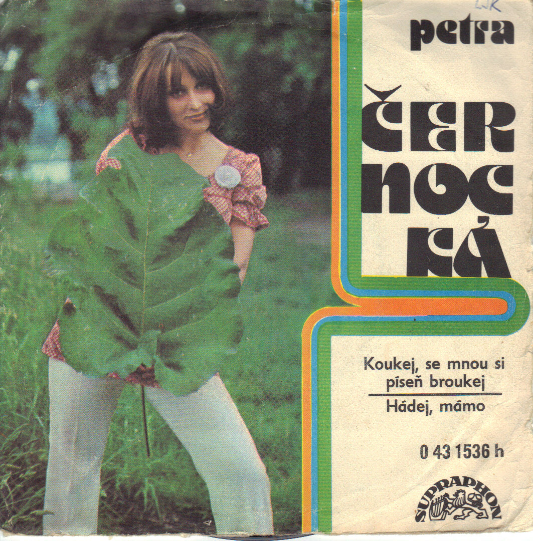 Petra Černocká was born on 24th November 1949 in Prague and at the time of the recording of “Koukej, se mnou si píseň broukej” / “Hádej, mámo” she would probably have been best-known for her both having sung the theme of and having starred, as Saxana, the teenage witch, in the 1971 film directed by Václav Vorlíček, Dívka na koštěti (“Girl On A Broomstick”).