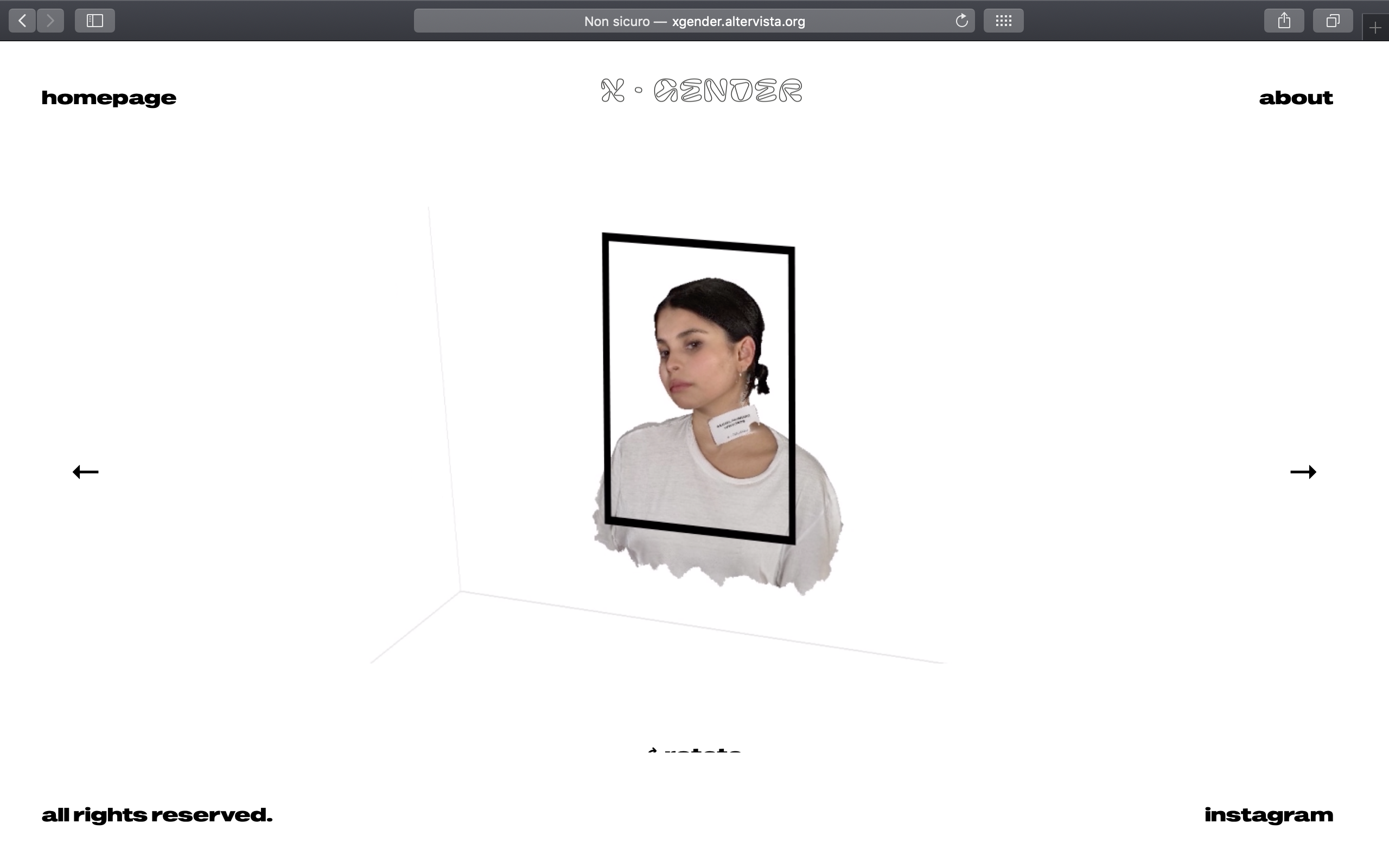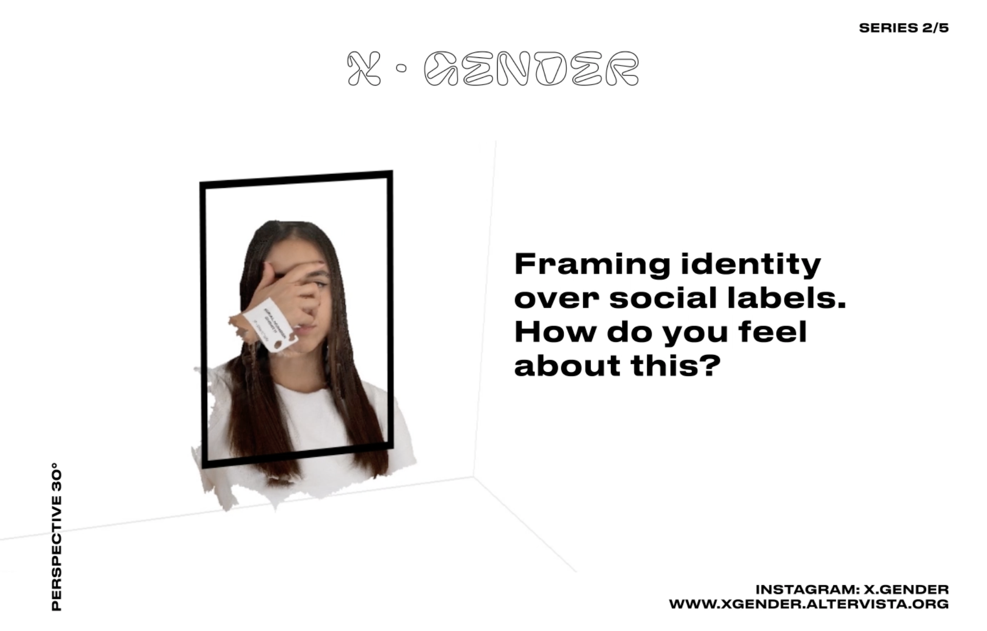 After a certain period of time, x·gender reveals itself, by substituting the outdoor billboards and opening the real website. An Instagram page has been launched, too, in order to collect first-person experiences, told as stories, and to create empathy with the public. At the base of the posters there is the visual technique of photogrammetry, that consists in creating 3D models, in this case of people, from a series of pictures taken all around the person chosen. For the copywriting, the focus is around the word “frame”, that contains different meaning, from the idea of shaping personal identity to the concept of celebrate it. Each poster has a serial number, another reference to the social labelling.