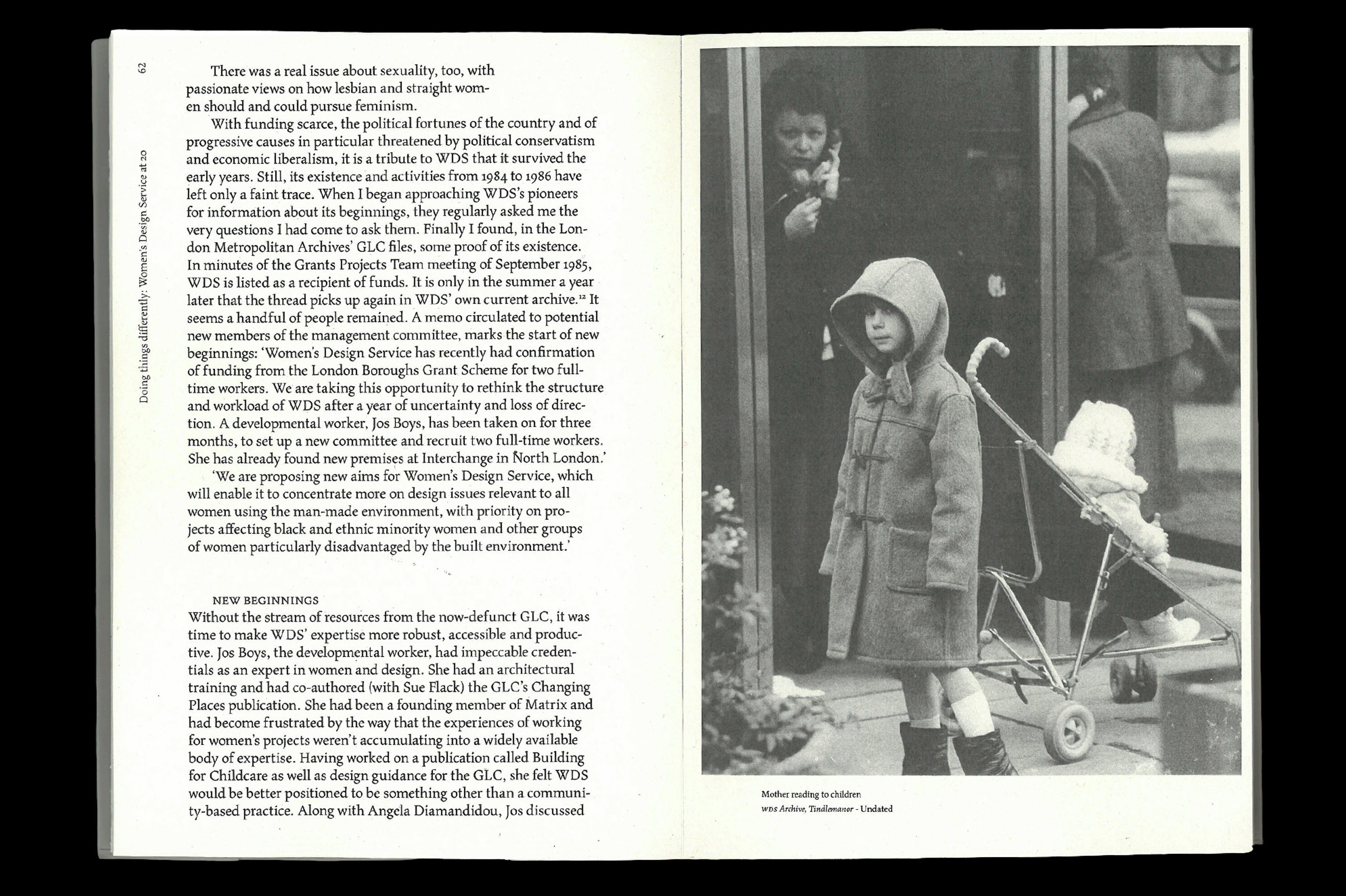 Doing Things Differently: Women’s Design Service at 20 is a historical insight into the Women’s Design Service (WDS), a London based female Architecture group operating between 1983 and 2012. Written by Eeva Berglund in 2007, five years before the organisation went into dormancy, much of the knowledge and appreciation of the work that the WDS did for local communities has been lost. This revisited edition aims to provide a comprehensive history of the organisation, by timelining each WDS publication, documenting previously unseen images from the WDS archive, and including interviews with WDS members Vron Ware and Amanda Claremont. Project ongoing.