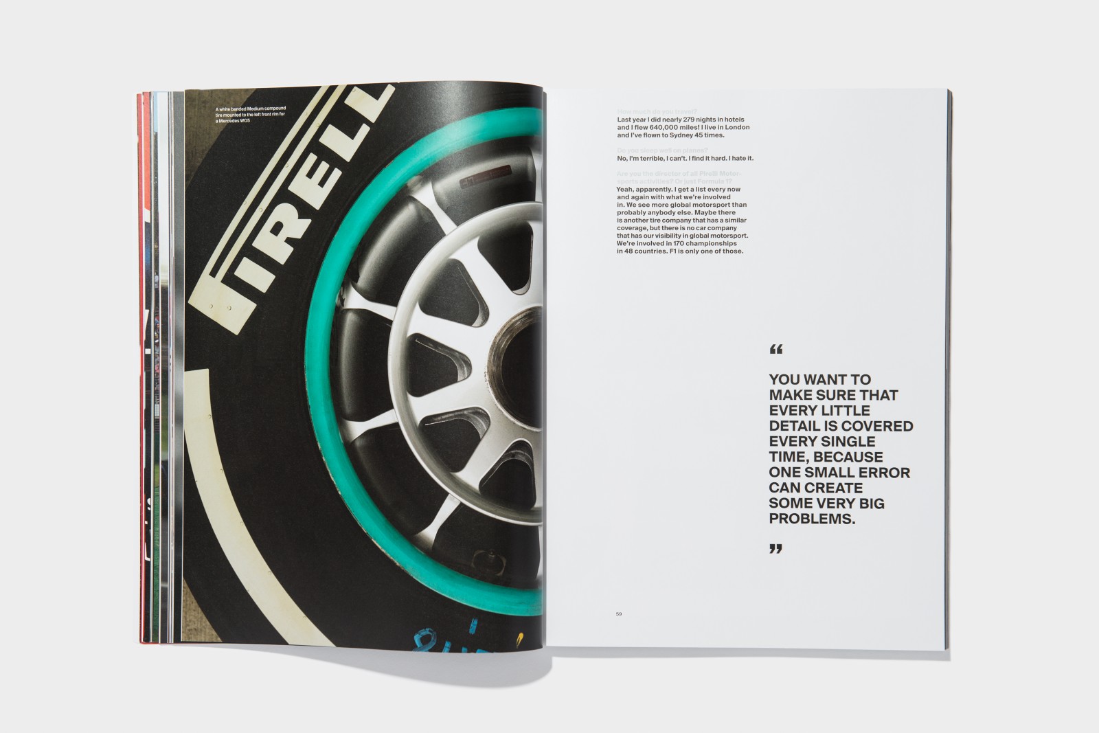Lollipop magazine issue #3, published in 2015, is a 228-page softcover publication, featuring nine races and critical statistics of the 2014 Formula 1 season. It features interviews and portraits of Pirelli director Paul Hembery, next to F1 drivers, Daniel Ricciardo, Dutch pride 17-year old Max Verstappen, Valtteri Bottas, Alexander Rossi and Kevin Magnussen. Finally, the issue also features an one-off fashion shoot, collaborating with Pirelli Motorsports, and legendary photographer, Harri Peccinotti, who shot the risqué Pirelli Calendar in 1969.