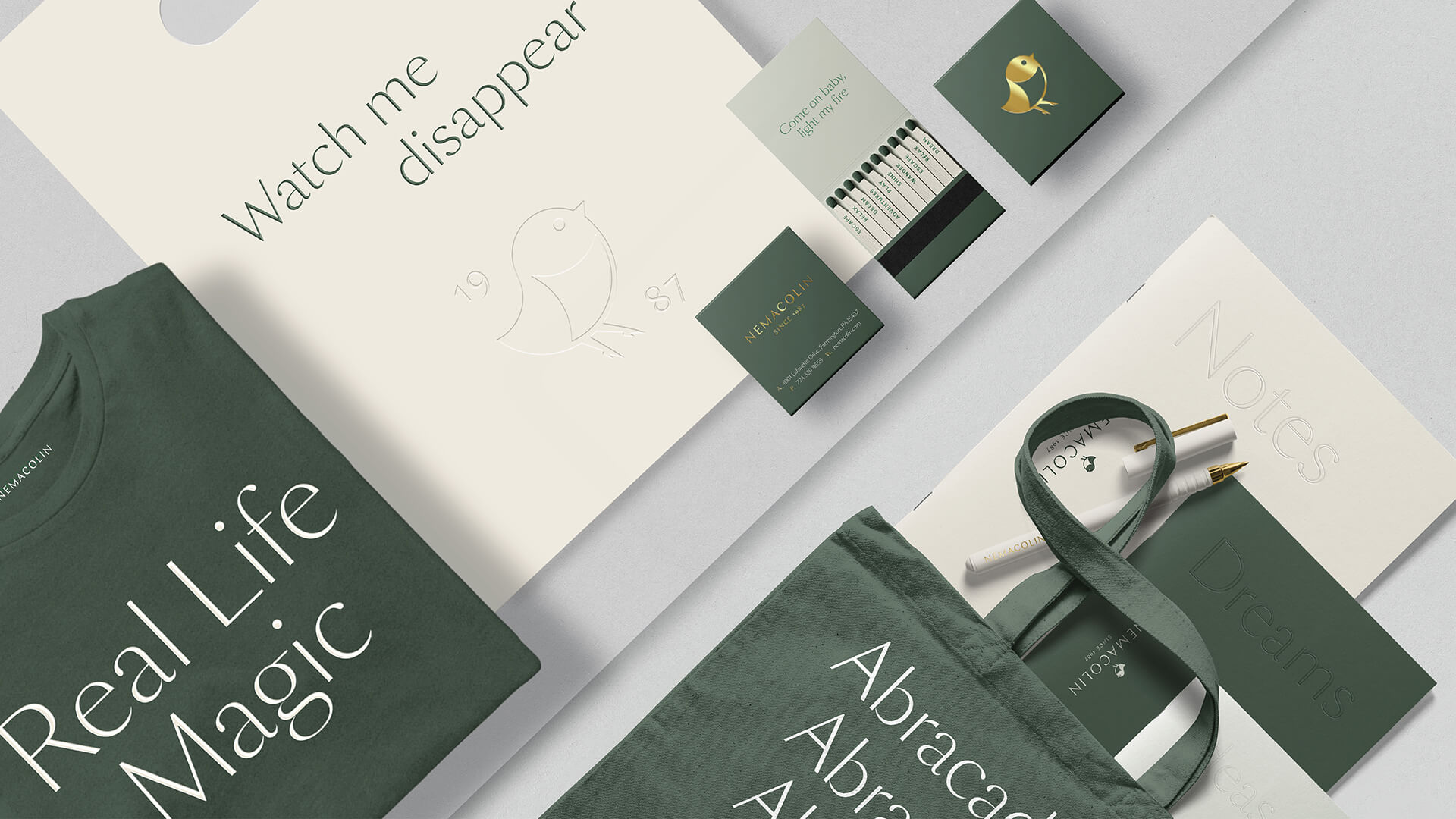 The completely reimagined Nemacolin branding features a new logo set in Chap with a more stylized bird nicknamed Pearl. SangBleu OG Sans is being deployed as the main typeface on advertising and promotional material, which are taking a lot of different shapes. Ano is used as a complementary typeface in the magazine typesetting for running text.