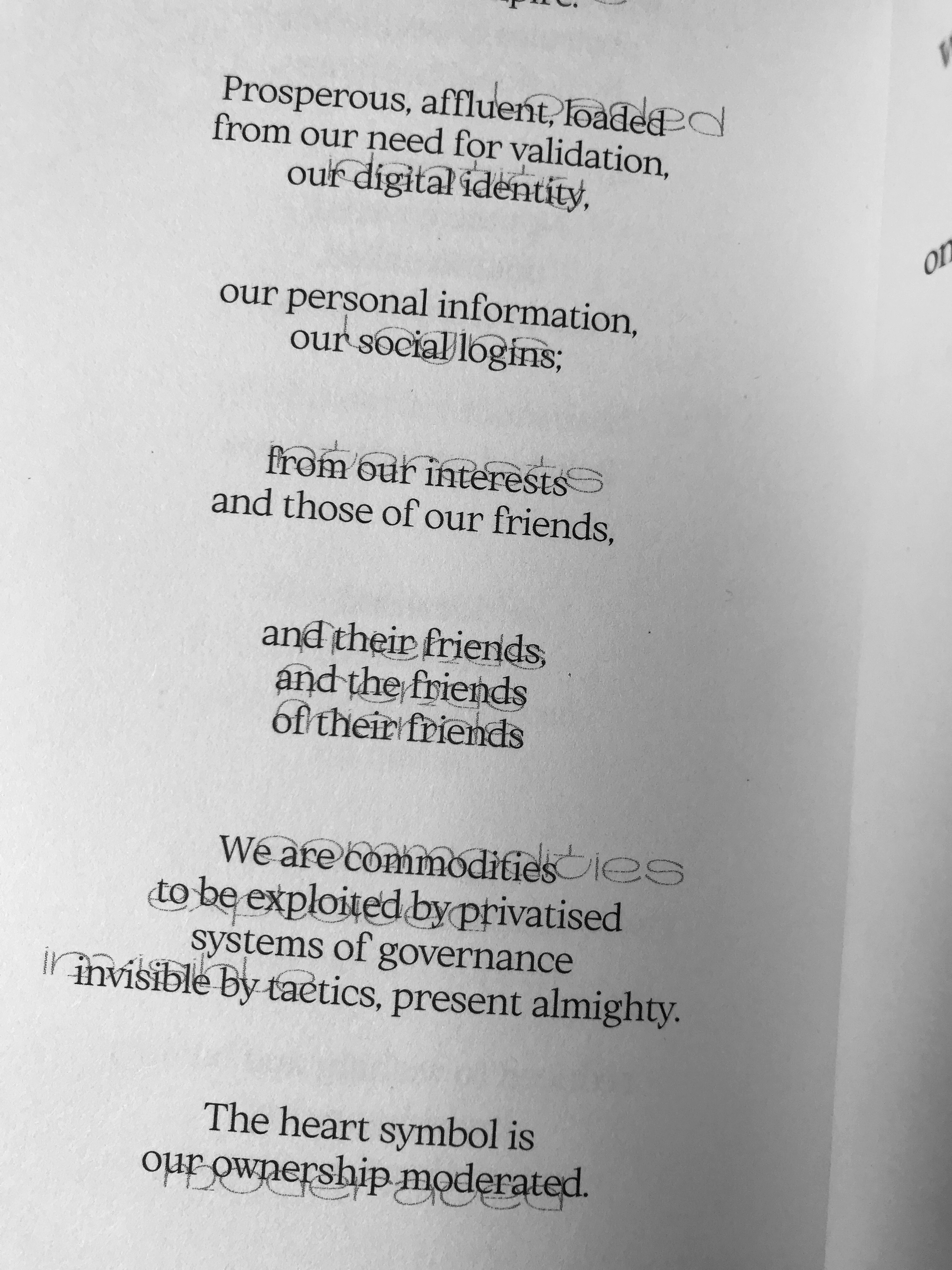 The poem mixes VTC Carrie from Tré Seals (Vocal Type), Ortica Linear by Benedetta Bovani and Zorn from Laura Csocsán.