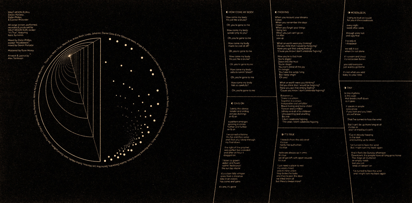 Canadian indie rockers Half Moon Run’s Inwards & Onwards, with cover art and sleeve designed by Alex Tomlinson. All typography uses Tomlinson’s Nay Aug, a yet unreleased work in progress.