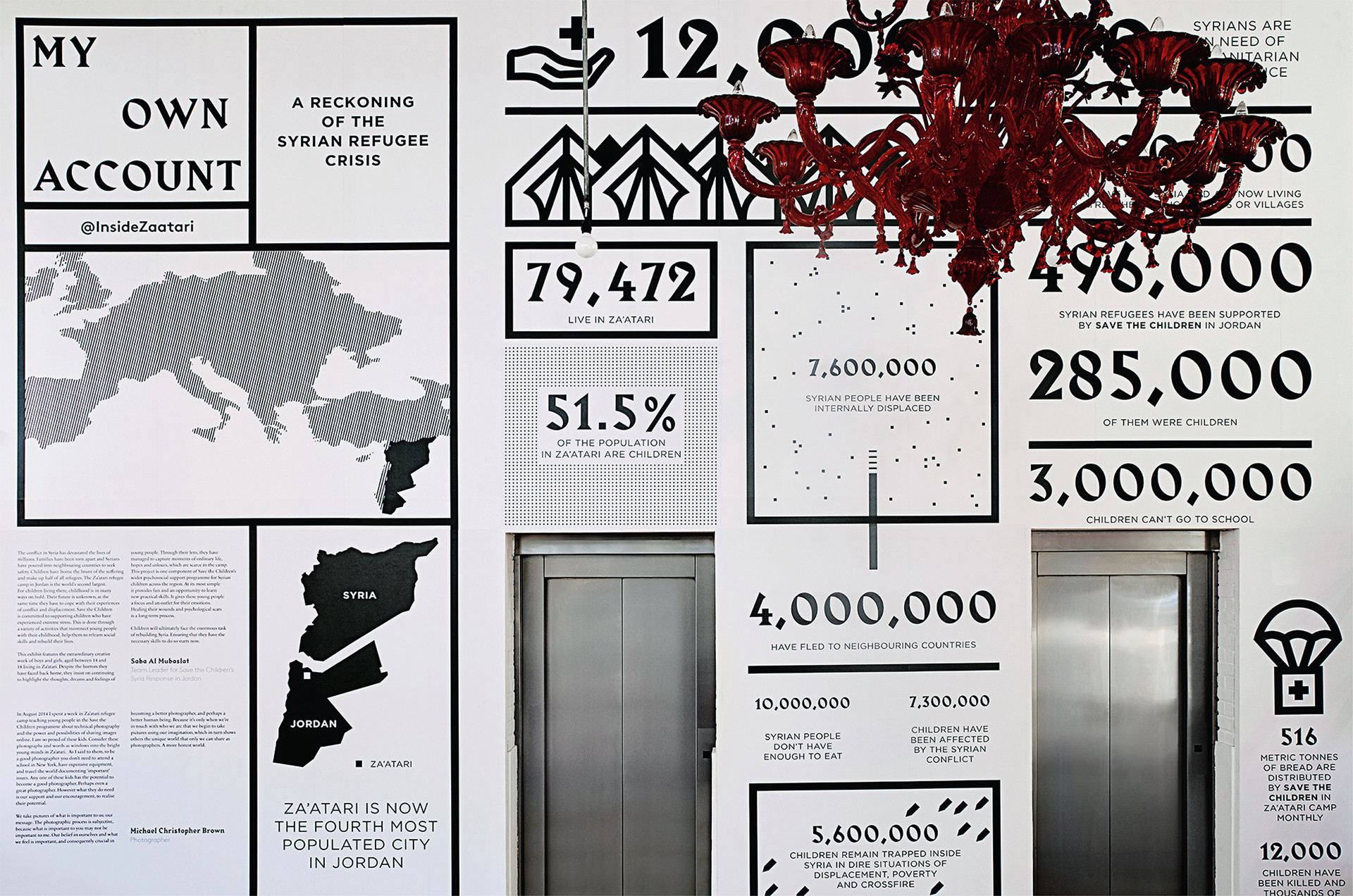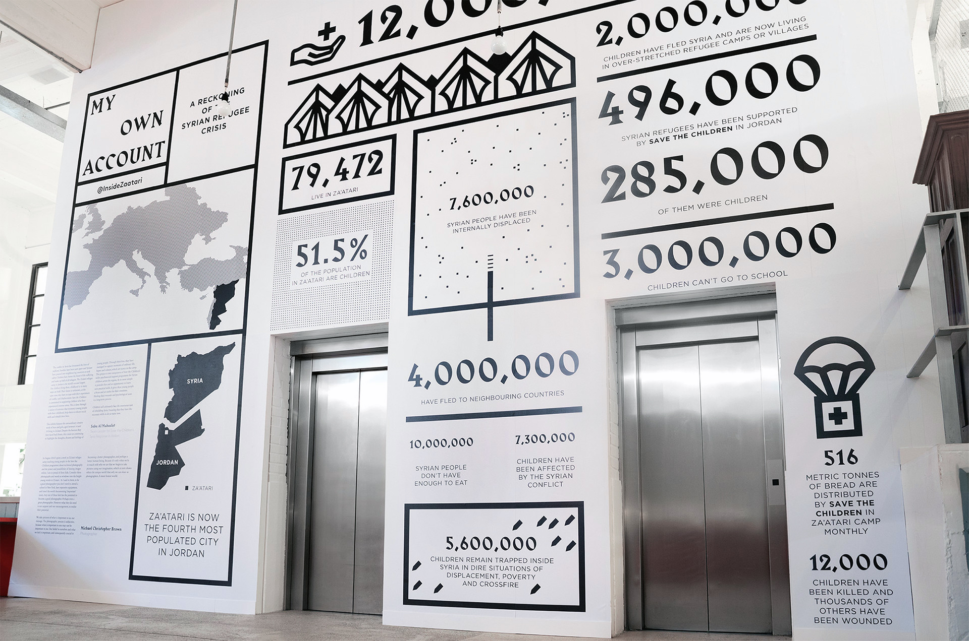 Helping the children of Za′atari share their world. When Save The Children invited us to visit Za’atari – the world’s second largest refugee camp and home to over 80,000 Syrians – we discovered an incredible project. Magnum photographer Michael Christopher Brown had created a photography class in which he gave 12 children iPhones and equipped them with the skills to tell their own stories. These kids have no direct connection to the outside world; no way to share their story and, vitally, to have others respond. My Own Account was about going beyond the photographs, creating an opportunity to engage with the people behind them. We took inspiration from social media to create an exhibition in which visitors coulld show their love for the photographs that they really connected with. These interactions were recorded and shared with the children of Za’atari in what, for many, was their first interaction with the world outside since arriving at the camp.