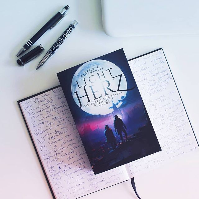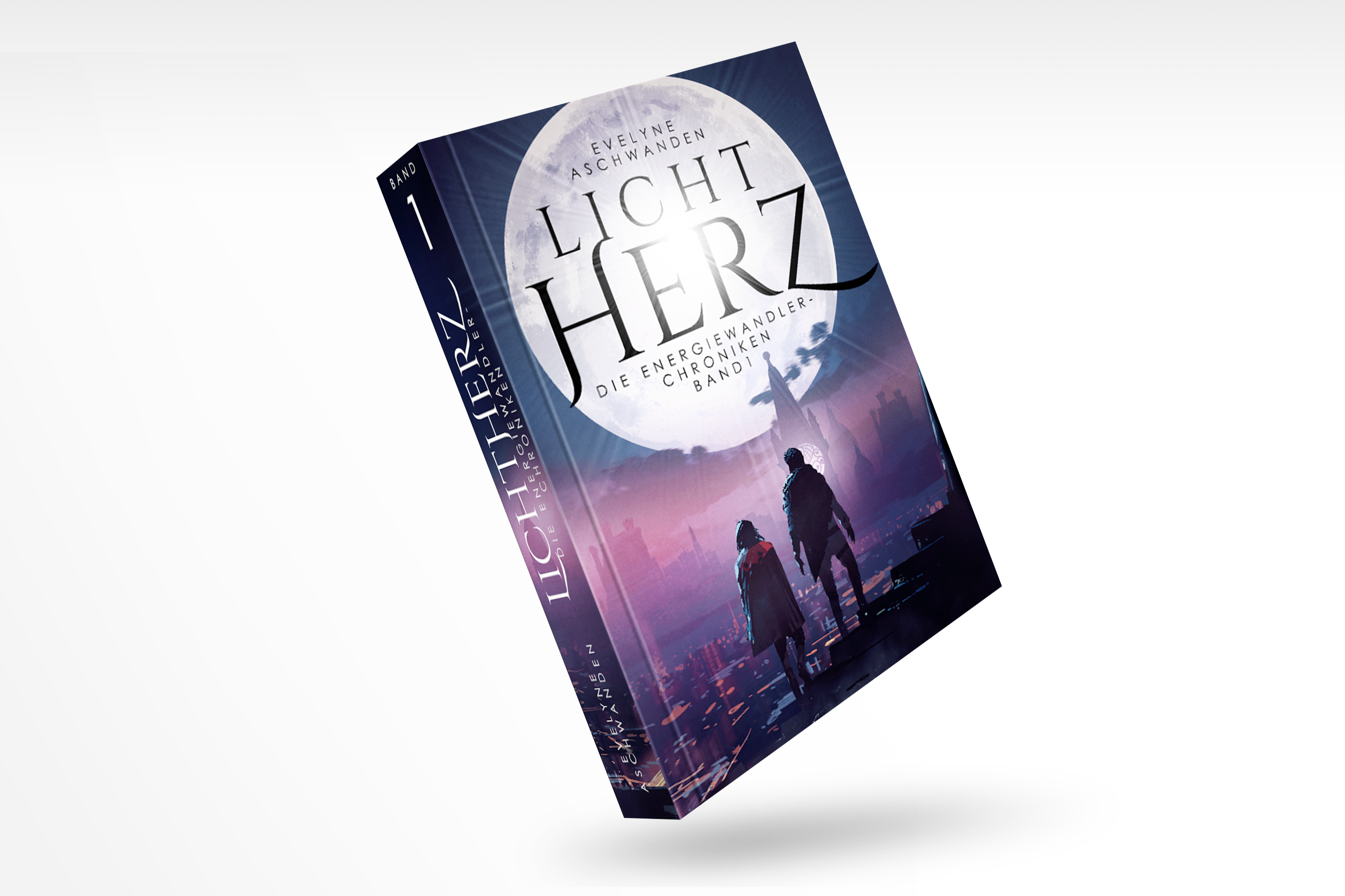 Lichtherz (“Heart of light”) is the first volume of Die Energiewandler-Chroniken (“The energy converters chronicles”) – a brand new science fiction trilogy written and published by Evelyne Aschwanden. The title of the series is set in King Slayerwith an alternate Z; the H was modified by graphic designer Jacqueline Kropmanns. [Edit: It’s actually Cinzel Decorative, see the comment by Akira.] All other cover typography uses Futura.