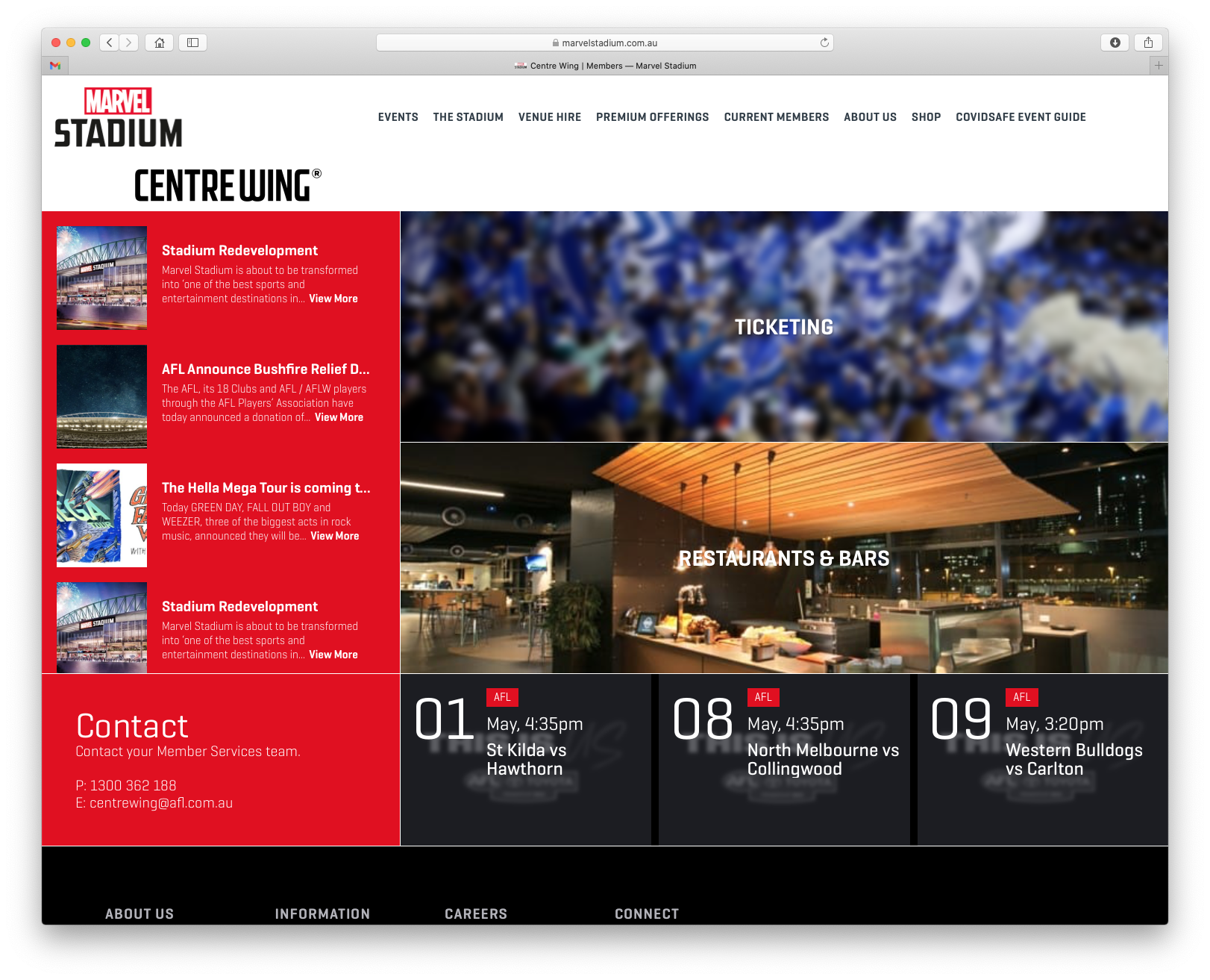 Located in the heart of Melbourne, Marvel Stadium has welcomed more than 42 million fans through the gates since opening in 2000. Renowned for regularly staging AFL, A-League and BBL action under the famous retractable roof, Marvel Stadium has also hosted some of the biggest international sporting events such as UFC, Soccer World Cup Qualifiers, International Rugby Union tests and USA Basketball versus Australian Boomers in 2019. Throughout its years, Marvel Stadium has hosted many memorable concerts for some of the world’s biggest stars including U2, Ed Sheeran, Taylor Swift, Foo Fighters, Justin Timberlake, AC/DC, Bon Jovi, Andre Rieu and Eminem.