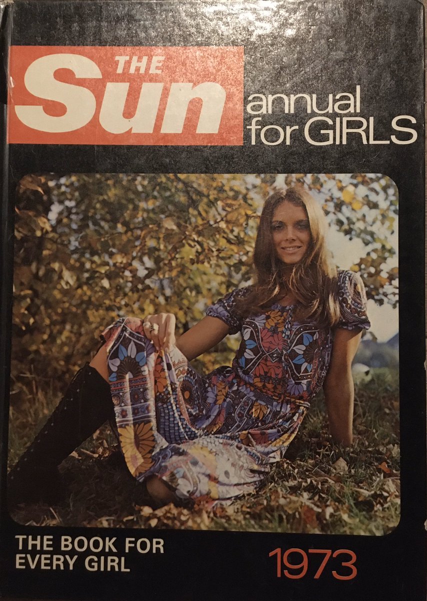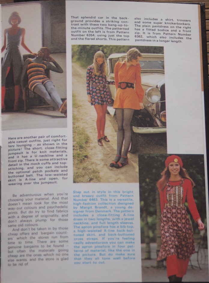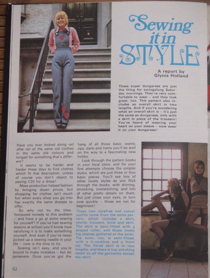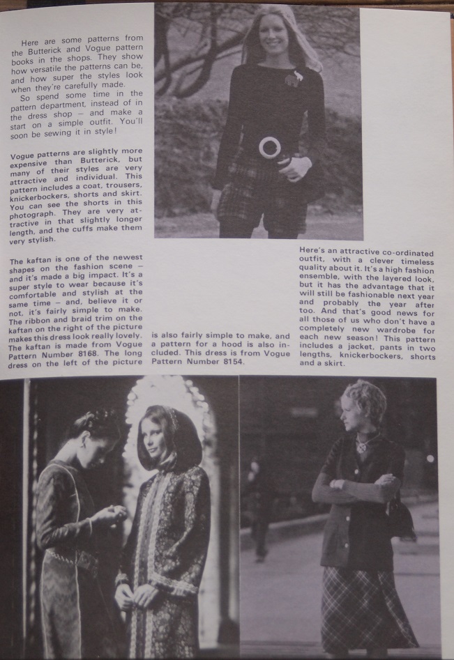 To carry on the theme of teen girls, sewing and the Seventies, as seen in my contribution Of Course You Can Sew! by Barbara Corrigan, here is an article in The Sun Annual for Girls 1973, which was one of a batch of three girls’ annuals from the early 1970s which I owned very briefly in the latter half of the last decade before promptly giving them away in a house move and fortunately decided to photograph some of the more interesting pages while they were still in my possession. Some are regrettably out-of-focus, but this article is luckily pin-sharp and the front cover, too, with the stunning photograph of the model wearing a timelessly stylish outfit, which makes one wonder if one is looking at something approaching half-a-century old, as I write this, with the The Sun masthead in similarly timeless Univers, along with the rest of the text on the front cover.