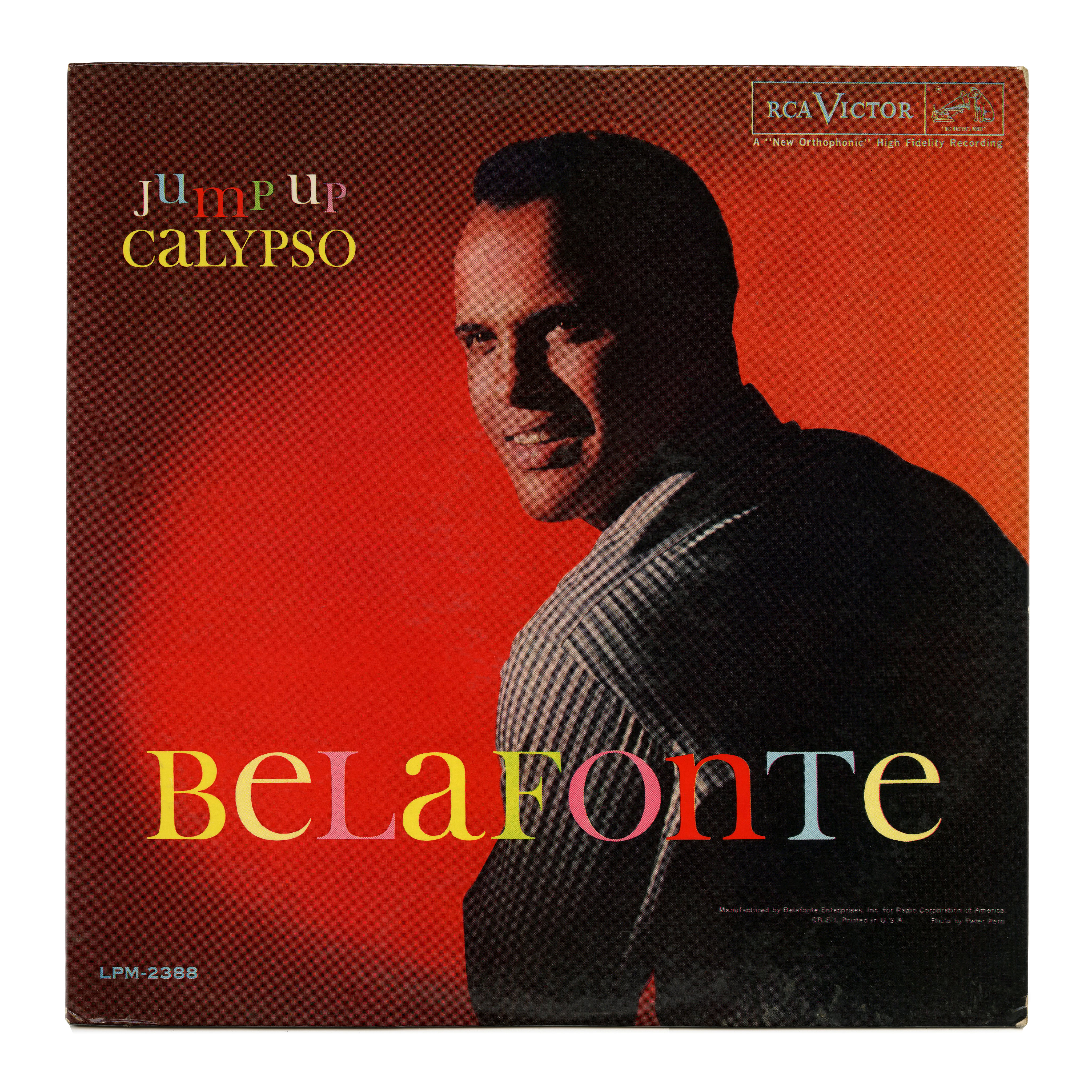 A (custom?) unicase version of Baskerville Old Face with alternating glyph colors for the cover of Harry Belafonte’s Jump Up Calypso. Photography by Peter Perri.