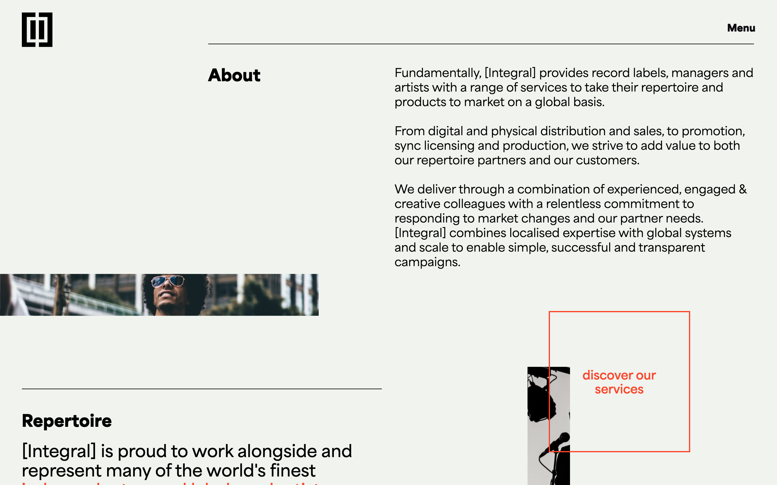Fundamentally, Integral provides record labels, managers and artists with a range of services to take their repertoire and products to market on a global basis.