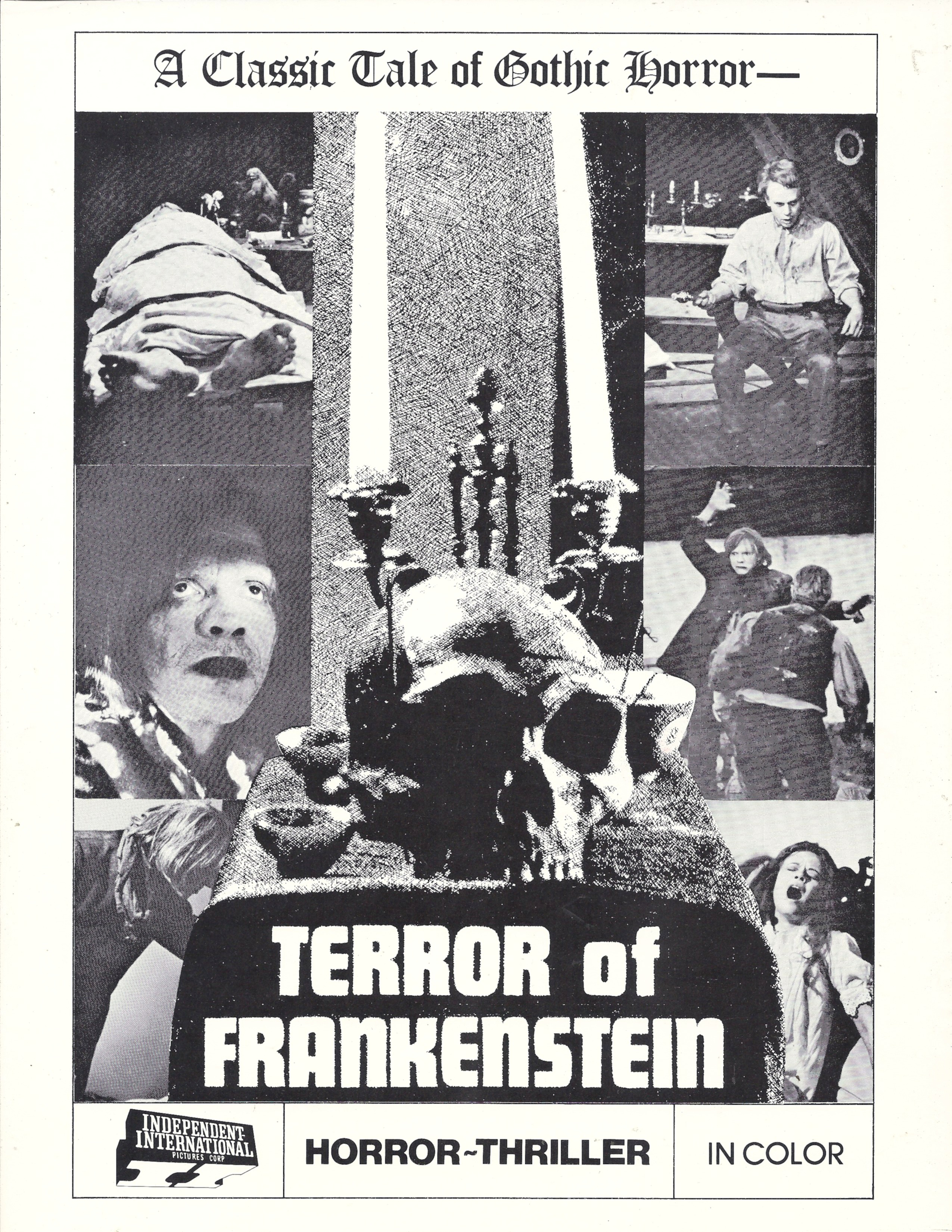 Flyer for what was originally titled Victor Frankenstein, this is one of the few Independent-International releases to undergo minimal tinkering. It is generally regarded as the most faithful to Mary Shelley’s novel.