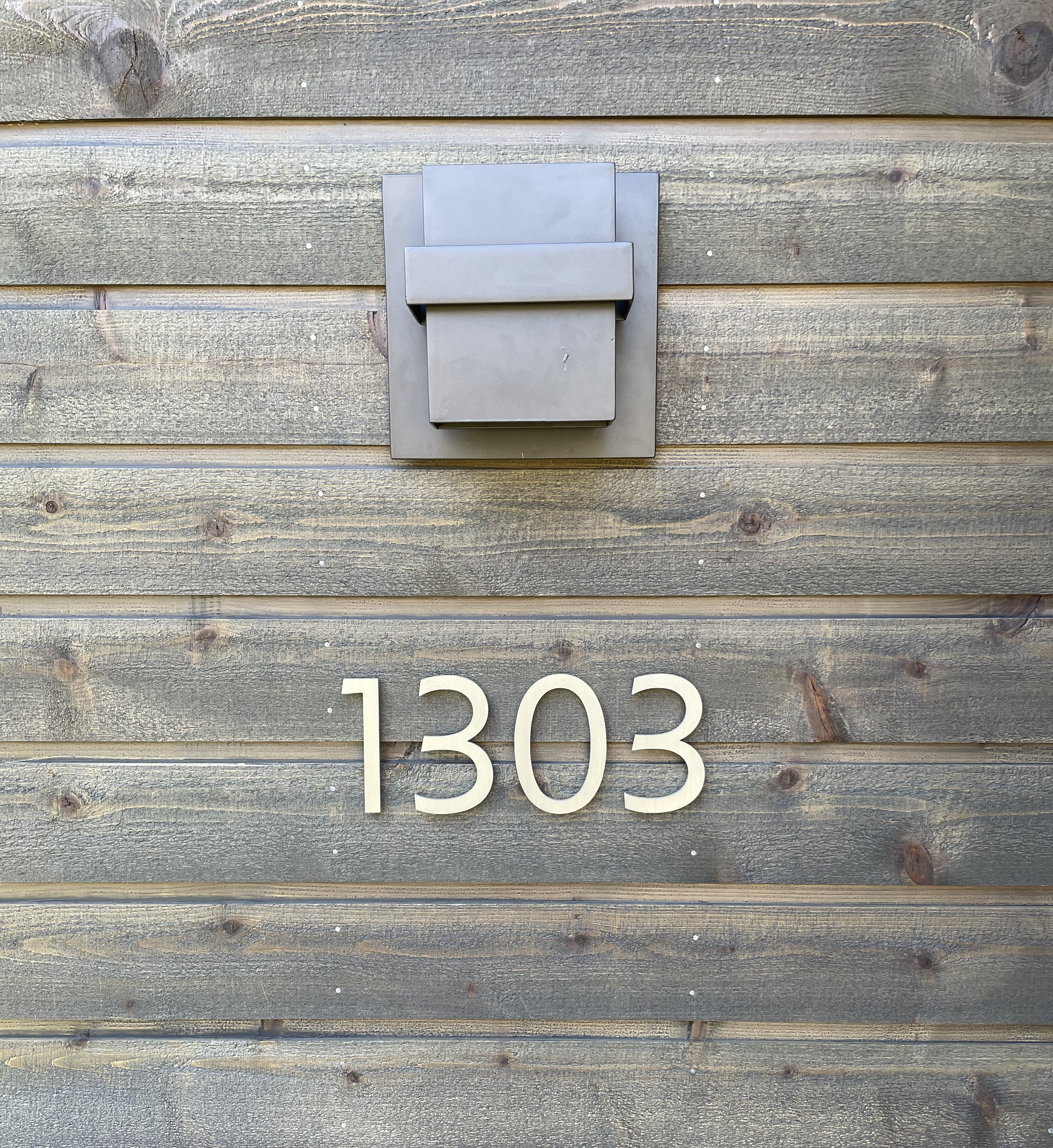 The Creekside condo development (previously New Villagers; built in 1973) in Sun Valley, Idaho renovated all the exterior cladding in Fall 2020. I was sad to see the funky old numbers go, but Matt and I worked with the design committee to make sure they didn’t replace them with boring, off-the-shelf numbers. We settled on custom aluminum in Metro Nova, which hopefully reflects the warm, natural modernism of the buildings.