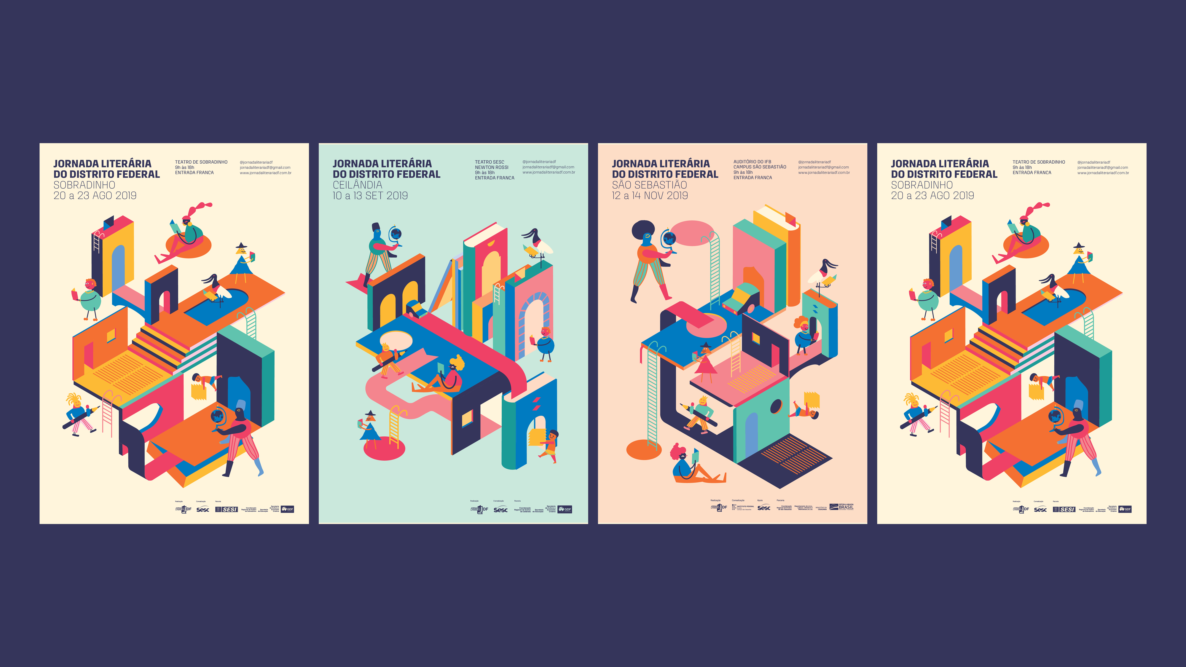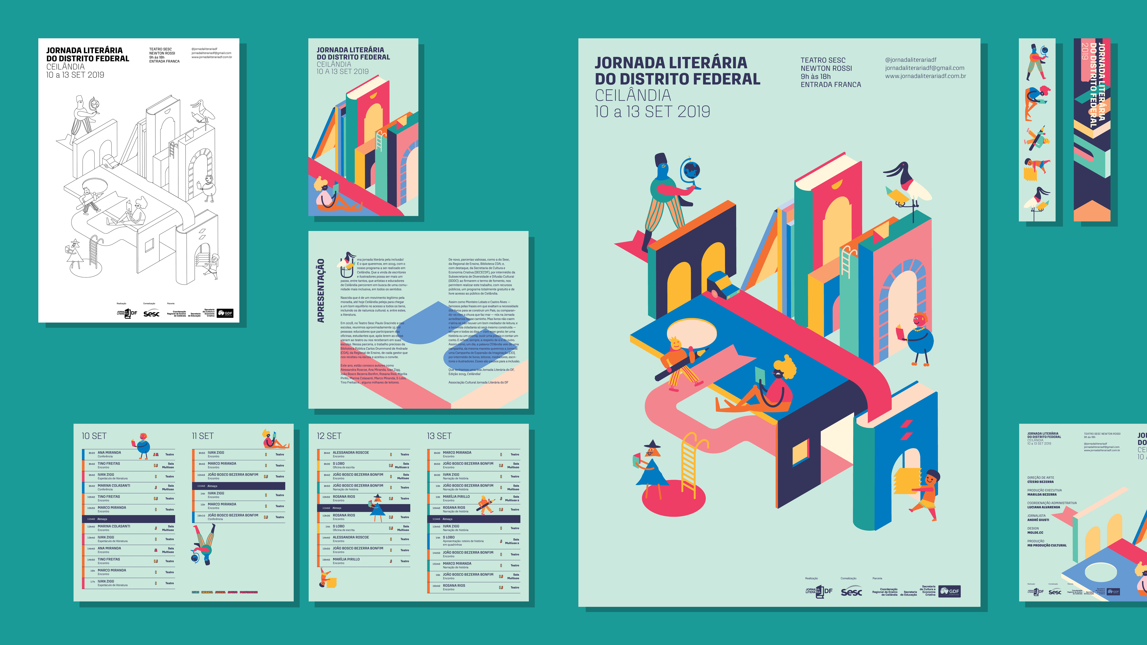 Visual identity and printed matter for the 2019 edition of Jornada Literária do Distrito Federal in Brasília, Brasil.