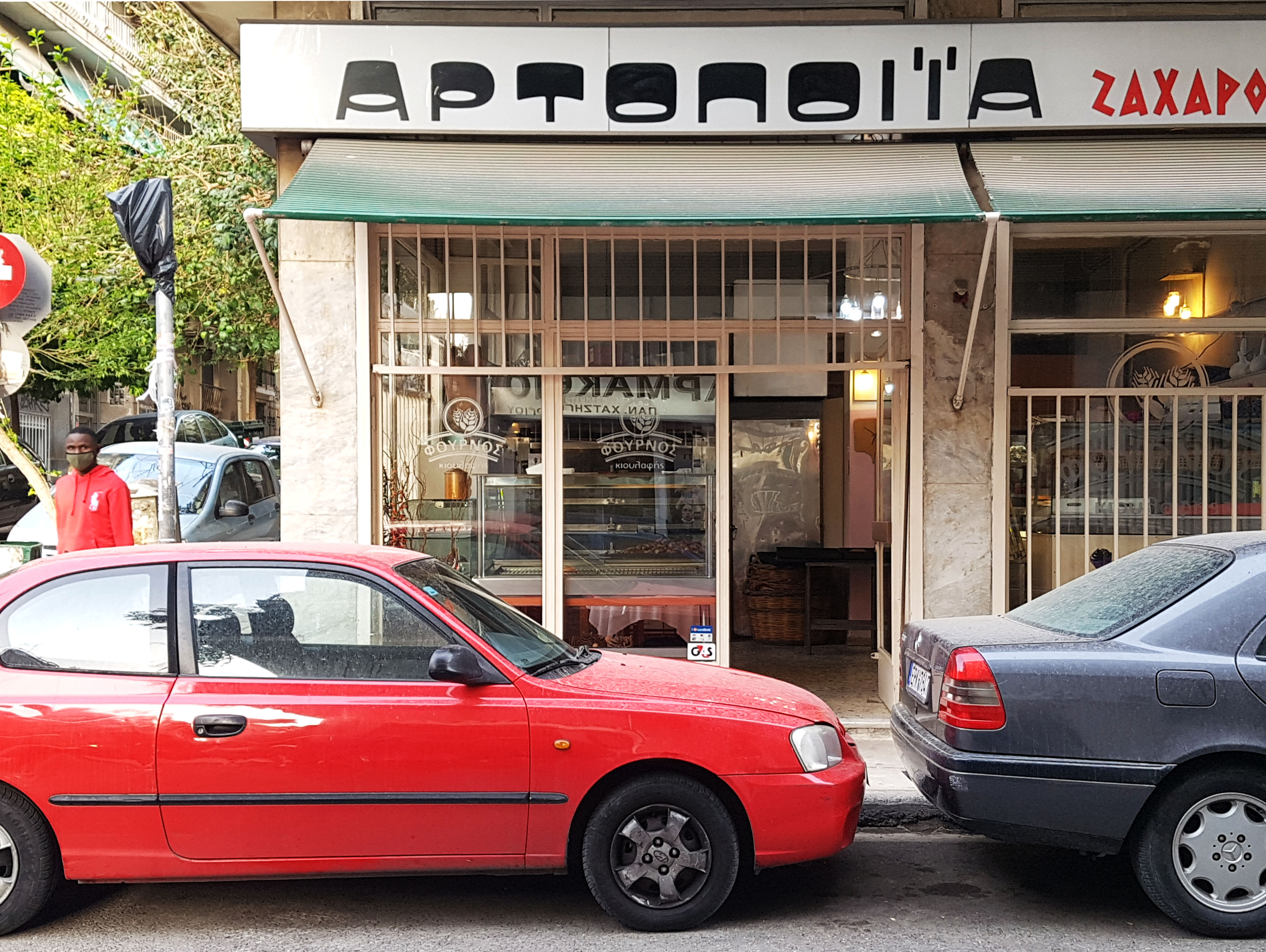 This sign of a bakery in Kato Patissia, Athens appears to use a Greek adaptation of the Jackson typeface. Most of the letterforms in “ΑΡΤΟΠΟΙΪΑ” (“bakery”) are slightly different from the ones found in Mecanorma’s version: proportions are less wide, corners are more rounded, Τ has a curved roof (unlike the Latin T), and Π is different both from N and an upside-down U. At this point of time, it’s not clear to me whether this is custom lettering inspired by Jackson, or whether there is a Greek adaptation in the form of a typeface.