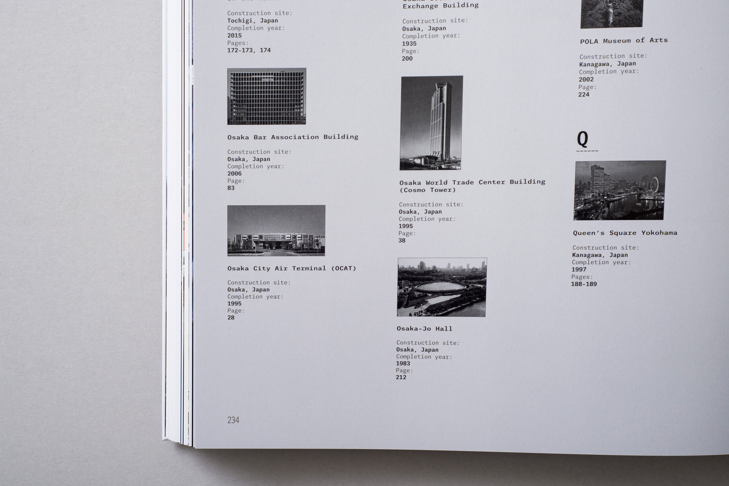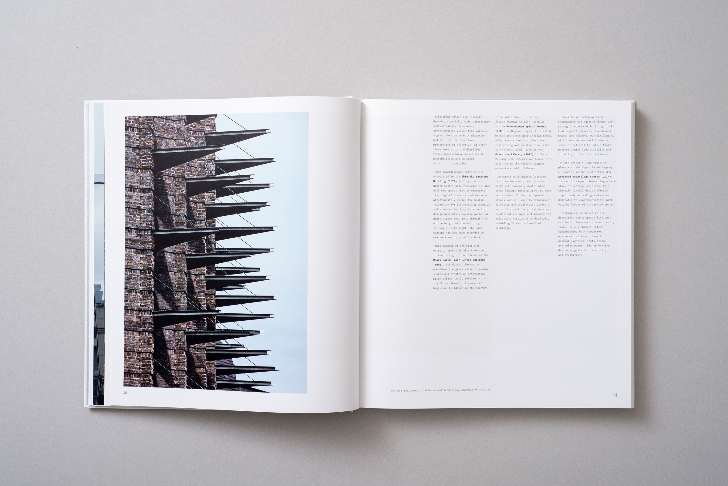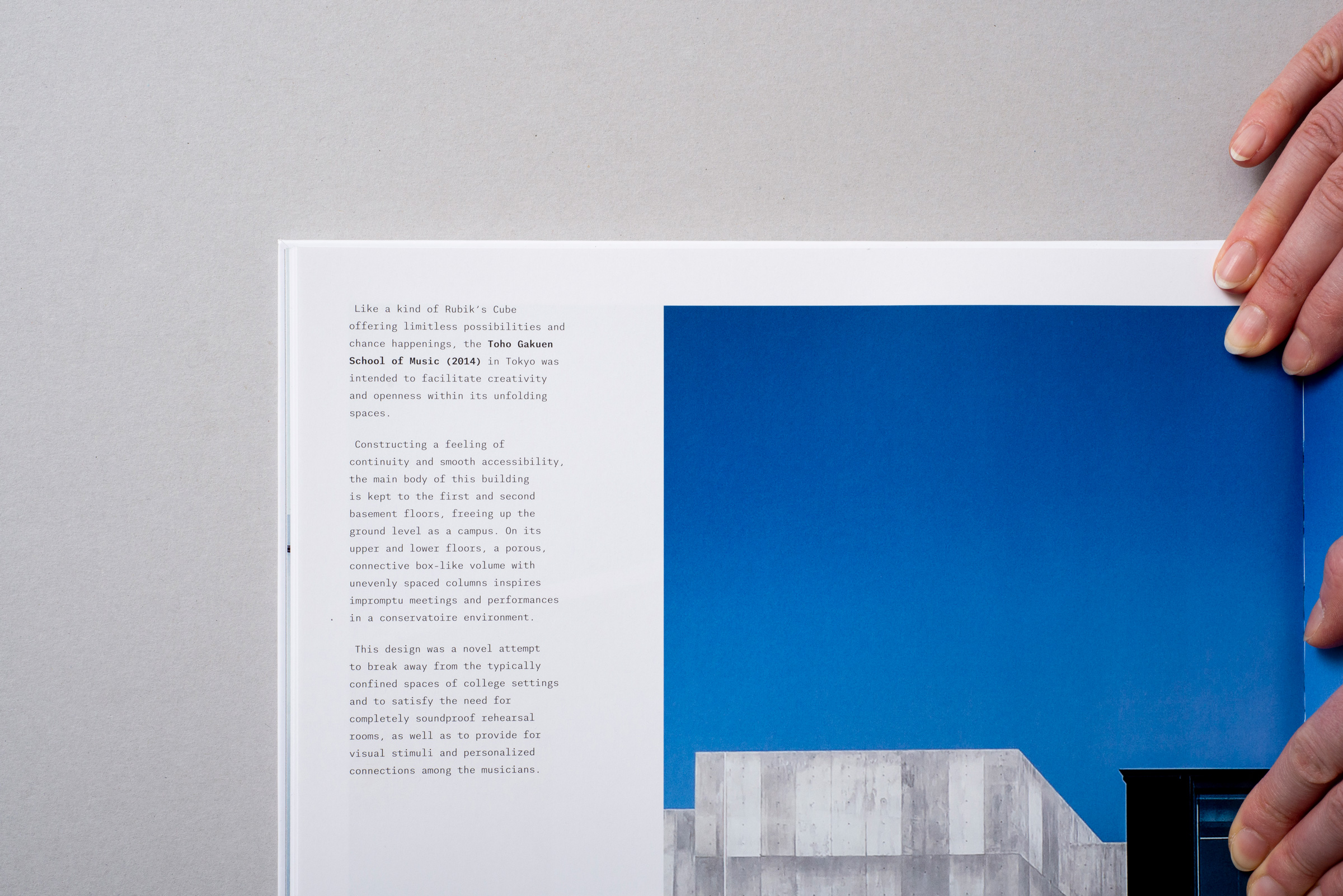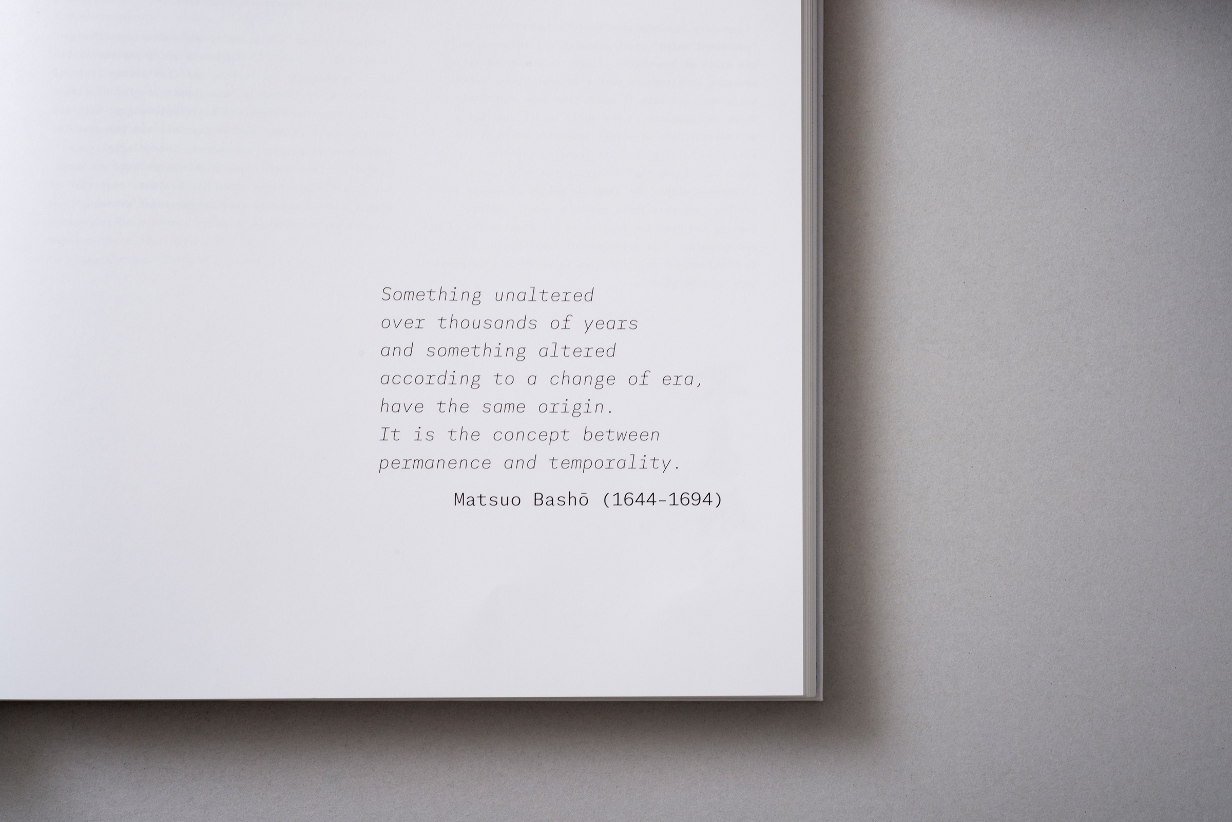 The book’s layout is inspired by Japanese typographic traditions and clean spaces, featuring Futura – Nikken Sekkei’s institutional font – and the monospaced Iki Mono in several weights.