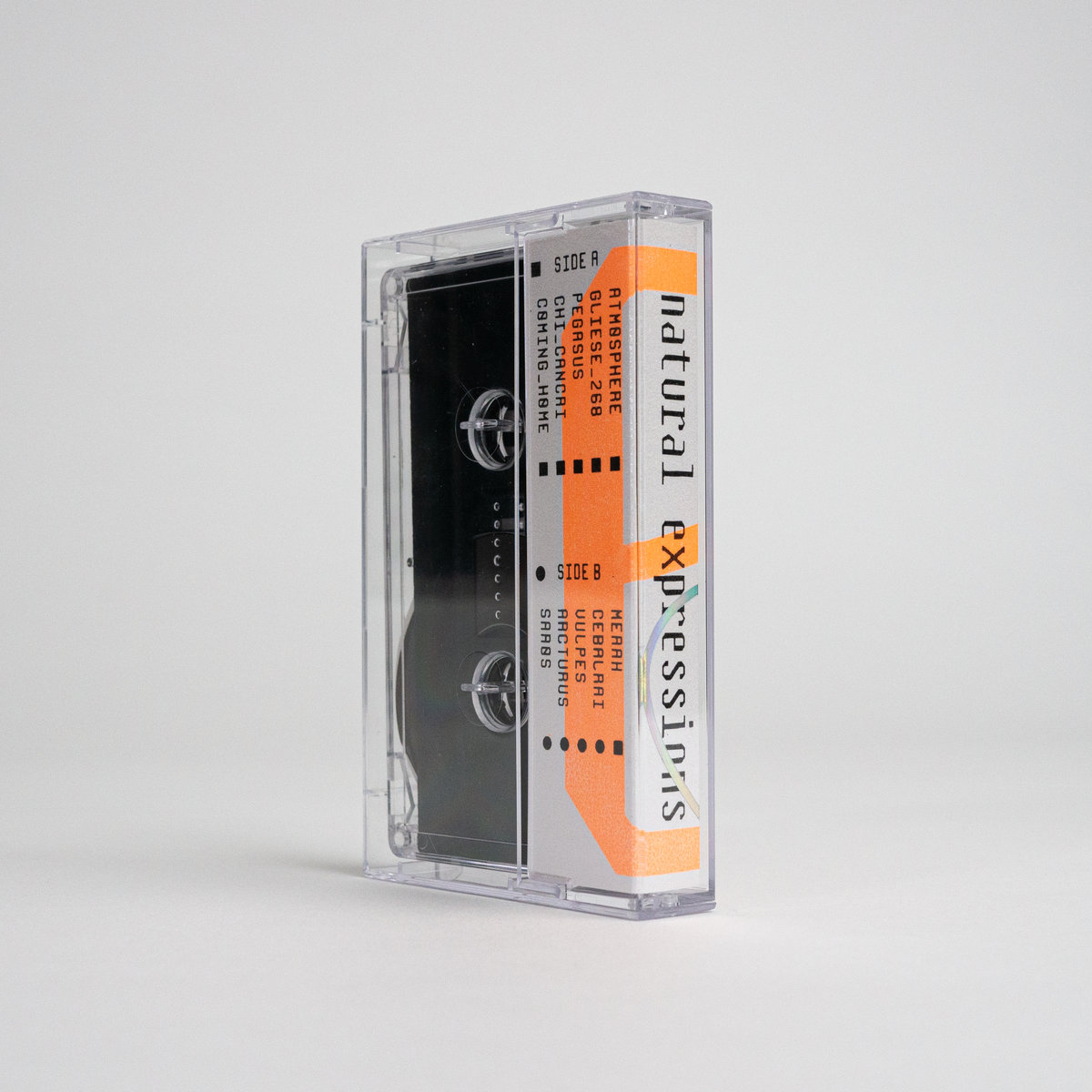 Steps Mono and Mono RGO in use for the cover of the latest release by Swiss musical artist Alessandro Crimi, released in April 2021 as NEX006 by Natural Expressions, a sister imprint of Drift Deeper Recordings. The cassette cover was screenprinted in black and fluorescent orange inks on Fedrigoni Symbol Pearl Paper and features metallic holographic foil and embossed binary.