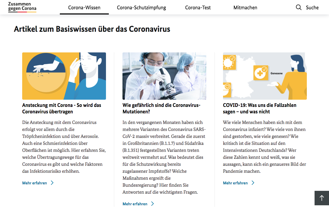 The Bundesministerium für Gesundheit (German Federal Ministry of Health) uses Stabil Grotesk for its information campaign Zusammen gegen Corona (“Together against corona”) on issues related to the Covid-19 pandemic.