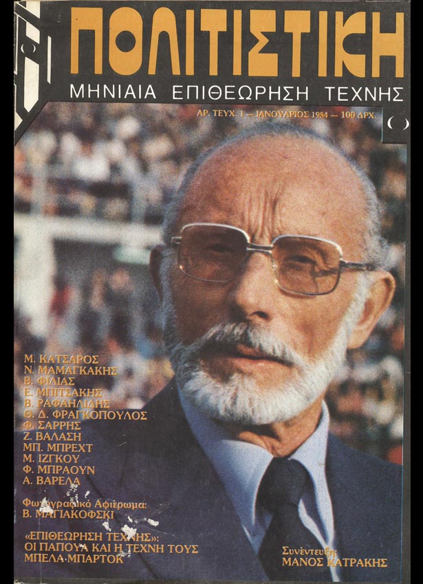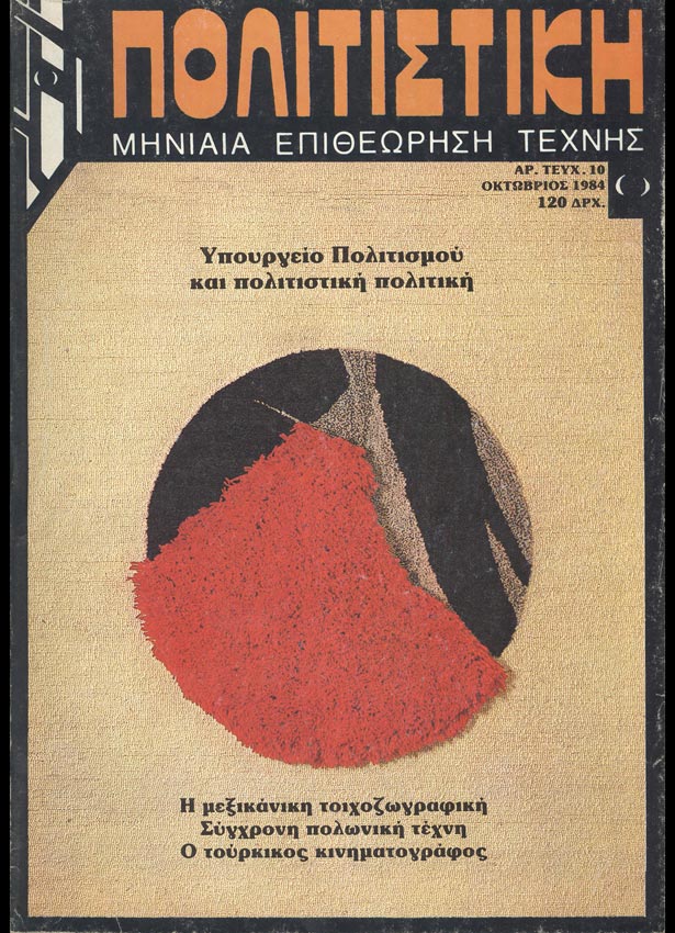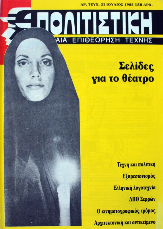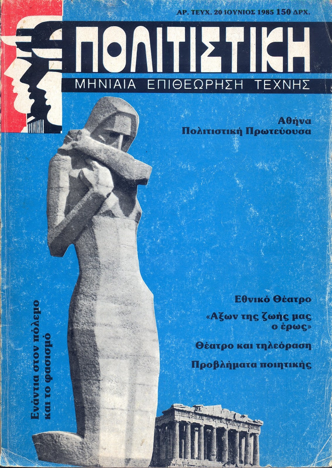 .Πολιτιστικη (“Politistiki”), or Πολιτιστικη Μηνιαια Επιθεωρηση Τεχνης (“Cultural Monthly Art Review”) was a magazine about cultural affairs and Greek literature. Edited by Αντώνης Στεμνής (Antonis Stemnis, 1952–2006), it was printed and circulated between 1984 and 1987.