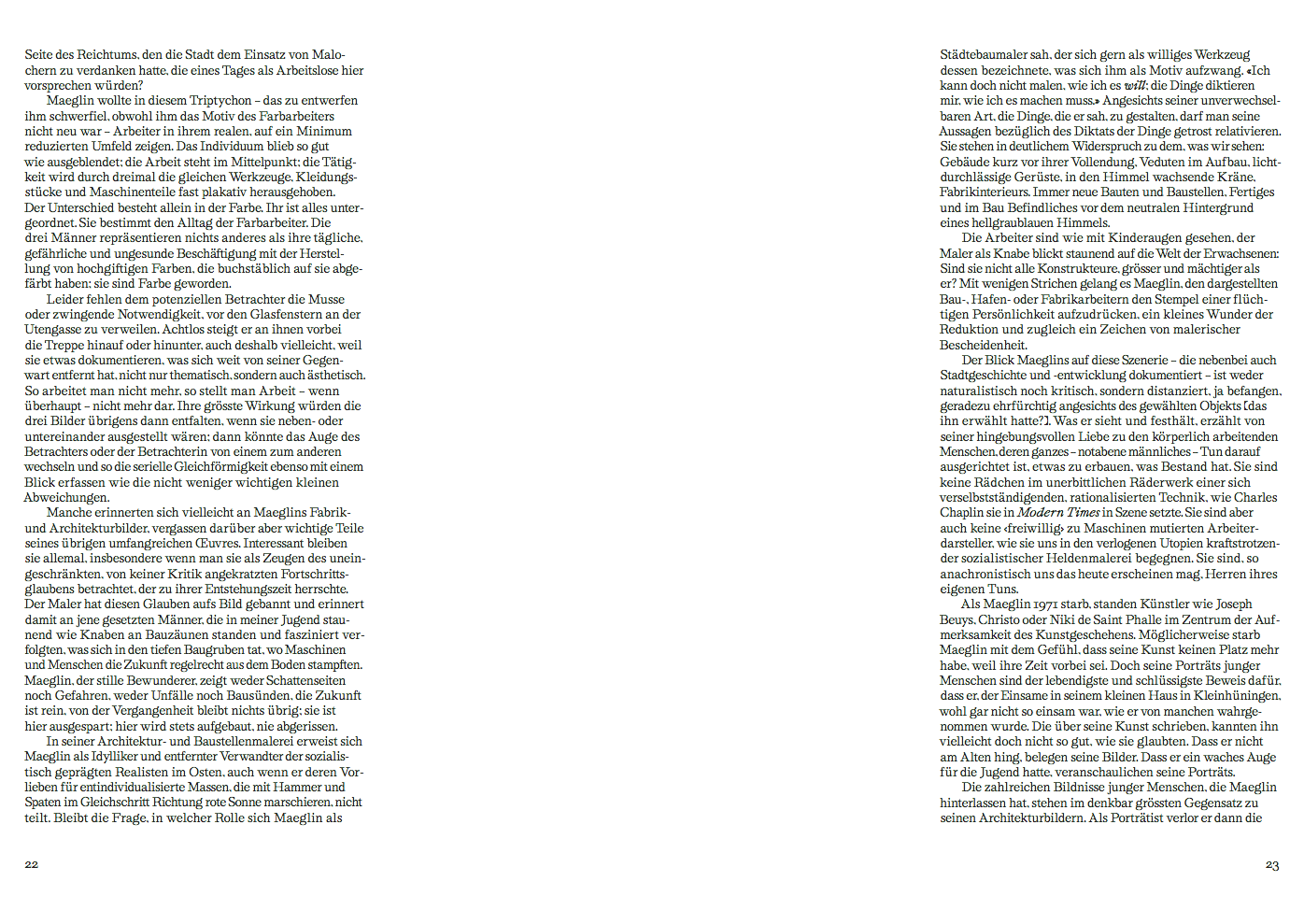 This bi-lingual monograph, with numerous reproductions of works from all stages in his career as well as art historical and literary texts, presents Maeglin’s oeuvre to a wide international audience for the first time, and forms the prelude to further engagement with it.