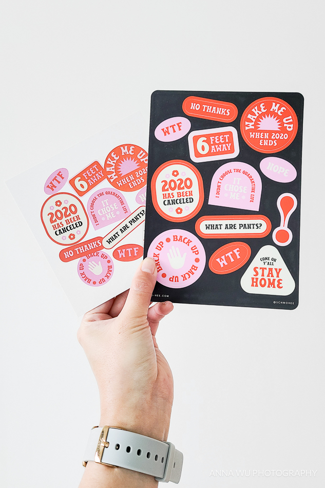 Do-Hee Kim, the San Francisco designer and co-founder of Shoppe Theory, designed these Stay Home stickers as a digital encouragement to folks at the beginning of lockdown in 2020, and ended up making them into a real sticker sheet by popular demand. Stickers include funny phrases that perfectly sum up 2020 like, “WTF” and “Nope” typeset in Beale, the funky serif designed by Amy Hood of Hoodzpah.