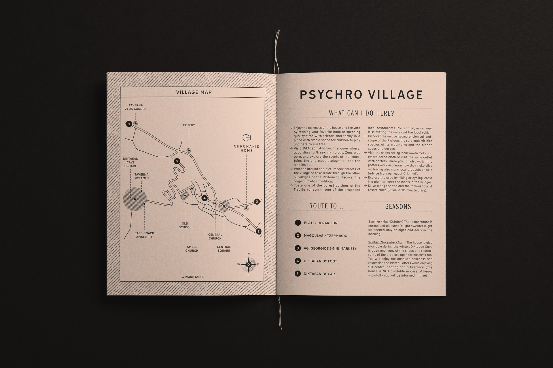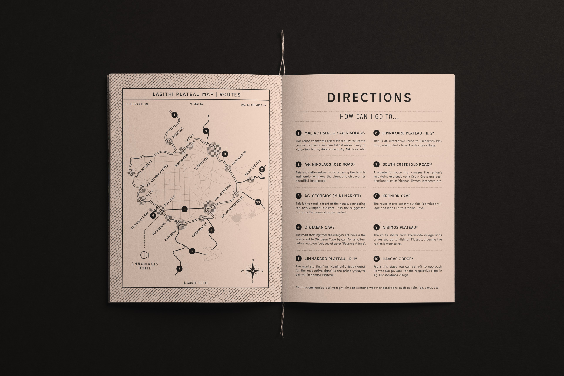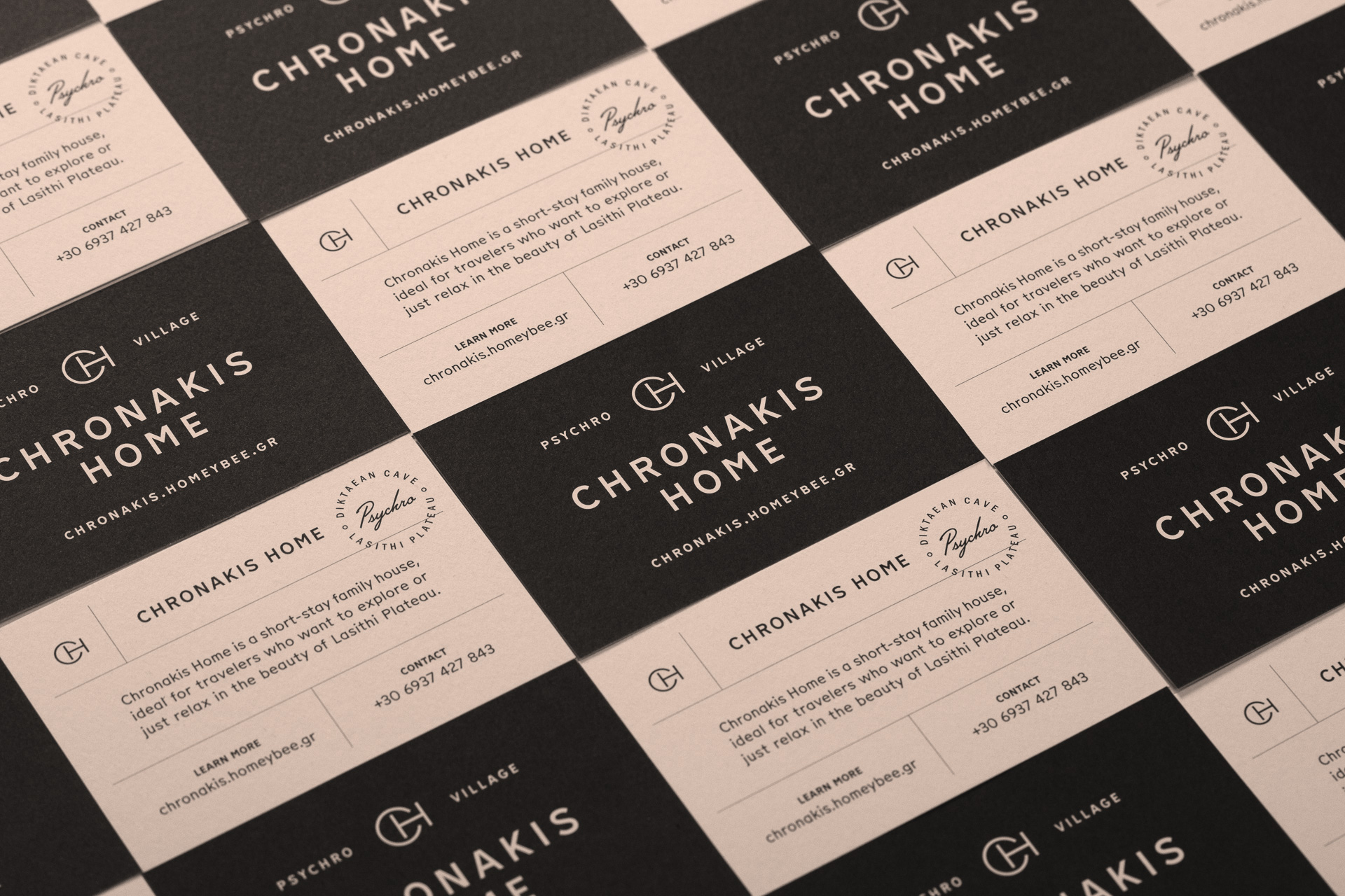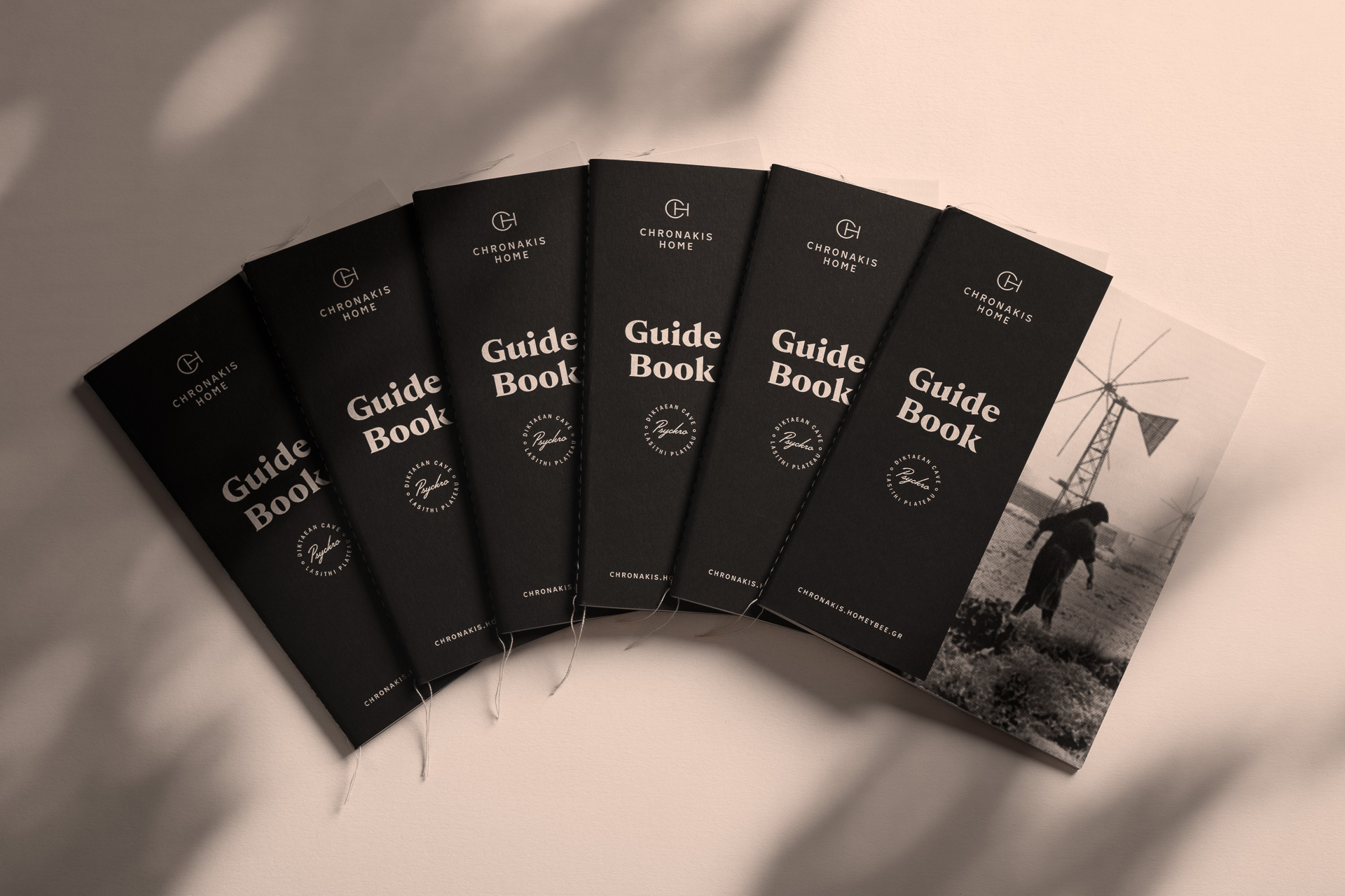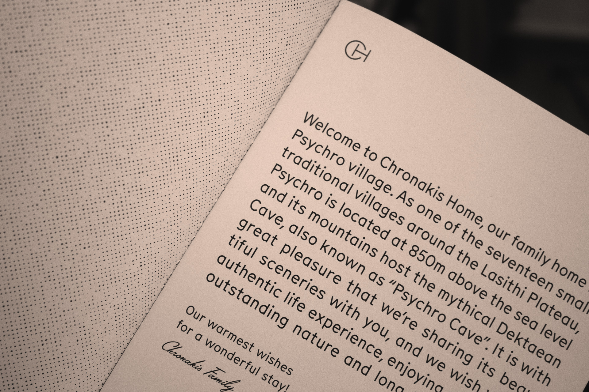 Chronakis Home’s design is based on the unique characteristics of the accommodation’s hospitality qualities; agrotourism, family hospitality, mythology, and more. The symbol – using the brand name’s initials (C/CH for Chronakis, H for home) – signifies the delicacy of home hospitality, while following the overall discreet character of the identity. The earthy colour palette, the nostalgic feeling of photography and the friendliness of voice and typography, reveal the all-embracing experience that the house, as well as the Lassithi Plateau, promise to the visitors.