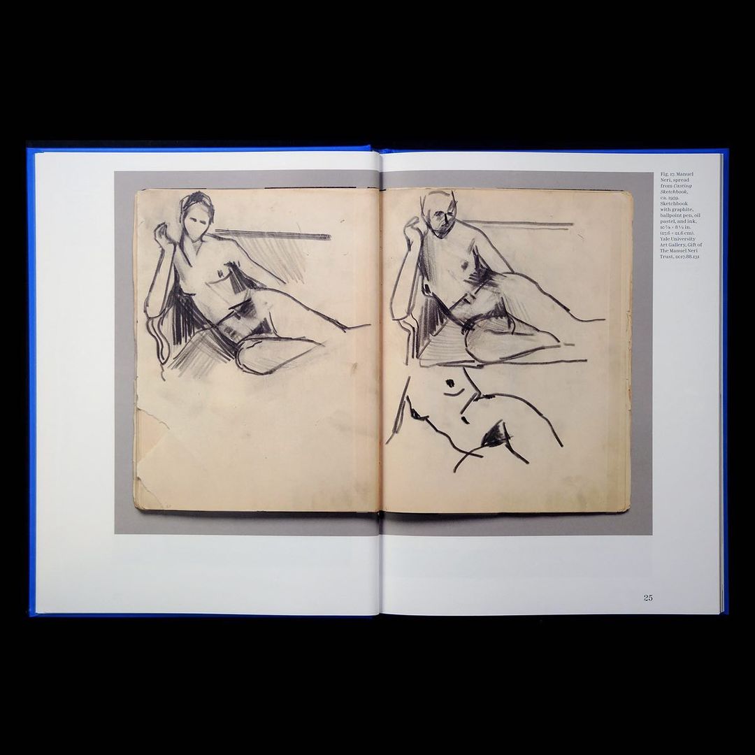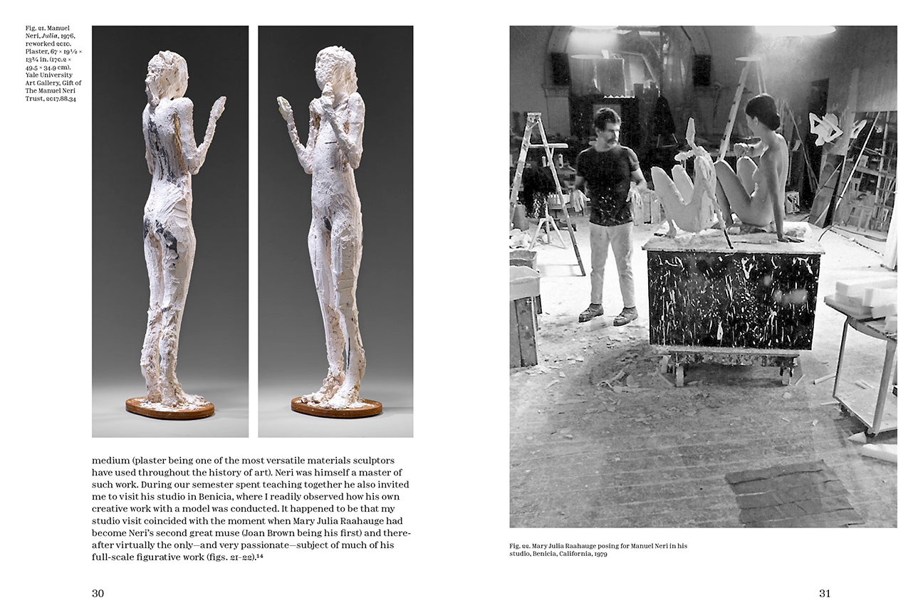 The exhibition catalog offers a few essays on Manuel Neri’s work and his teaching, and displays previously unpublished archival images. It was designed by Christopher Sleboda with a radical focus on the typeface: Minotaur designed by Jean-Baptiste Levée and available from Production Type. For Sleboda, the font crystallizes the whole concept behind Manuel Neri’s work: even though Neri relentlessly aspires to render the human figure, his figures exhibits asperities and accidents, pushing classical sculpture to its limits. The choice of Minotaur can be seen as a reflection of this practice: its absence of curves, replaced with a multitude of straight lines, reevaluates what we expect from a typeface, while keeping the skeleton of an elegant early 20th century serif.