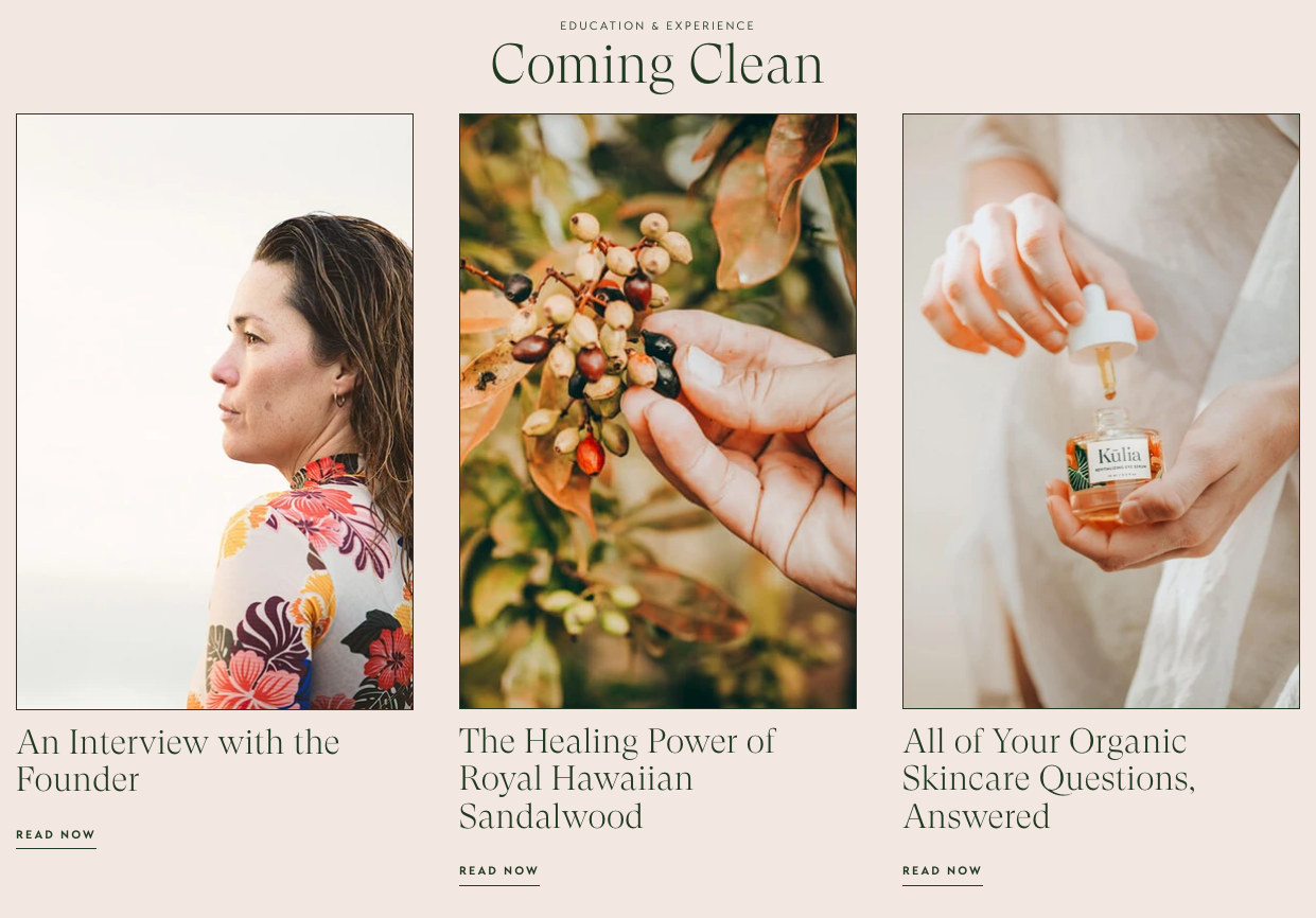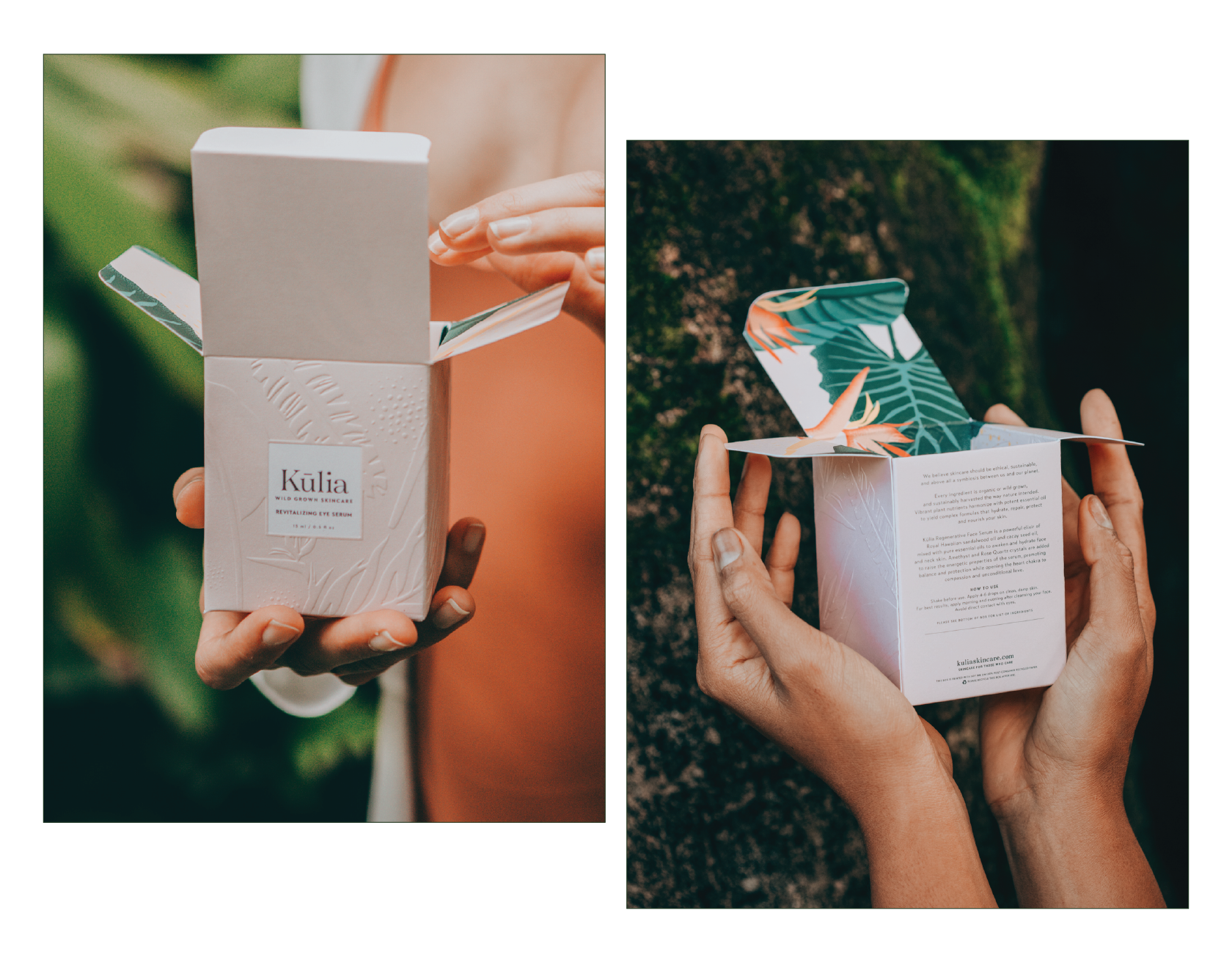 The Kūlia story starts with its name. Kūlia in Hawaiian means ‘to strive,’ and founder Jasmine Keeney is striving to create a new standard in organic skincare. Every ingredient in Kūlia’s Regenerative Face Serum and Revitalizing Eye Serum is certified organic or wild grown, and held to the industry’s highest standards. We are proud to have partnered with Jasmine every step of the way, to build this incredible brand from the ground up.