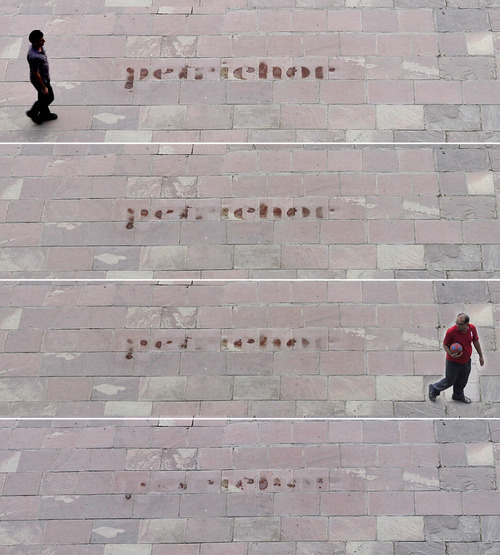 Set in the gorgeous Reina, a typeface we’ve been smitten with since last year, we cut a 2×12 feet stencil and sprayed water through it, to transfer the lettering to the ground. The roads and pathways are so hot in Delhi’s blazing 45 degrees, that the water made it smell lovely immediately and the lettering evaporated within seconds.— Type Out