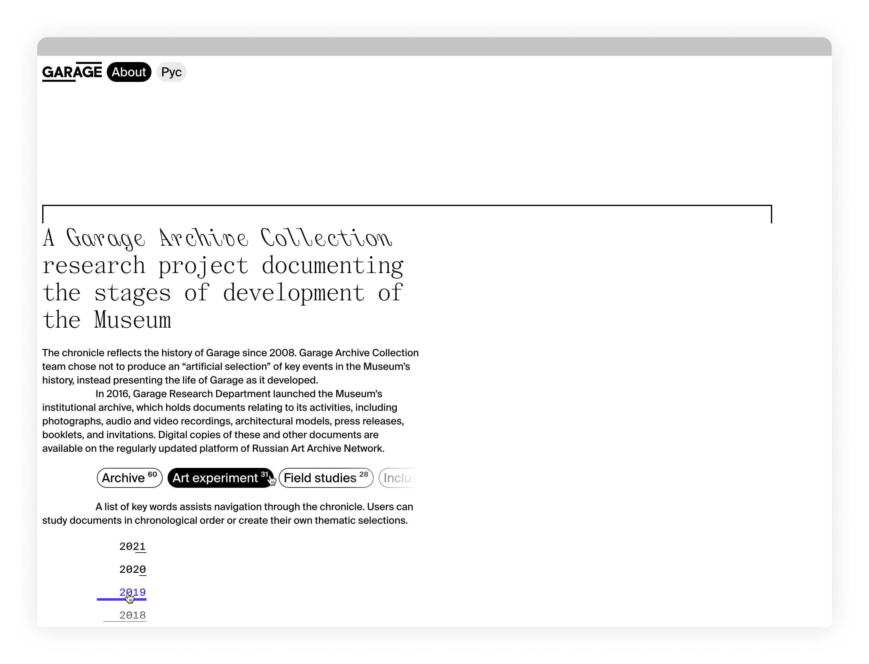 Garage Museum of Contemporary Art celebrates its 13-year anniversary with an interactive project on the history of the museum.