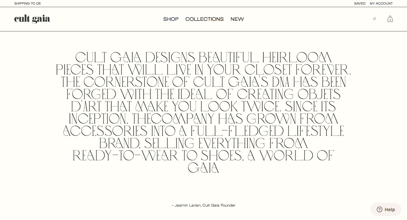 Cult Gaia designs beautiful heirloom pieces that will live in your closet forever. The cornerstone of Cult Gaia’s DNA has been forged with the ideal of creating Objets d’Art that make you look twice. Since its inception, the company has grown from accessories into a full-fledged lifestyle brand, selling everything from ready-to-wear to shoes, a world of Gaia.