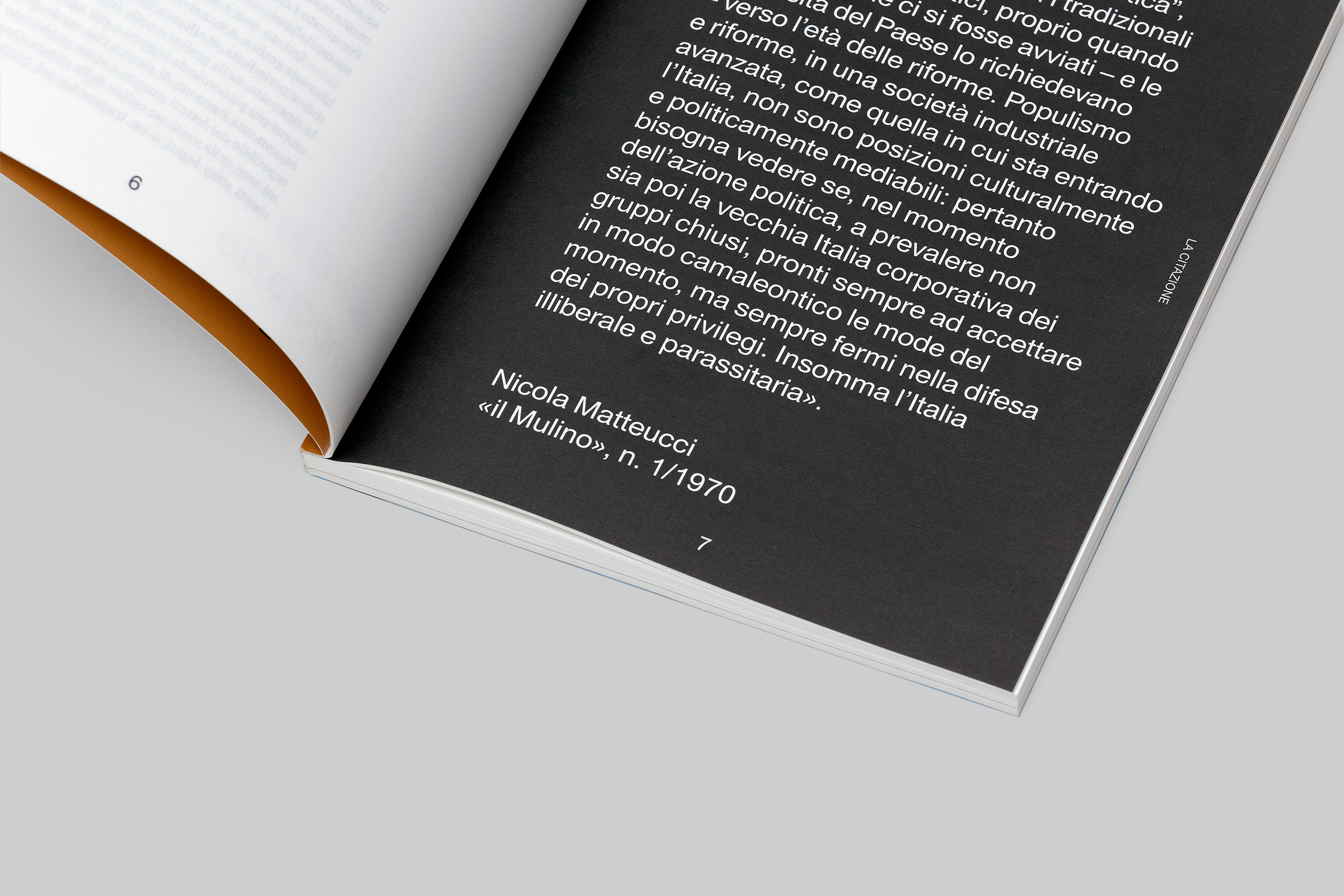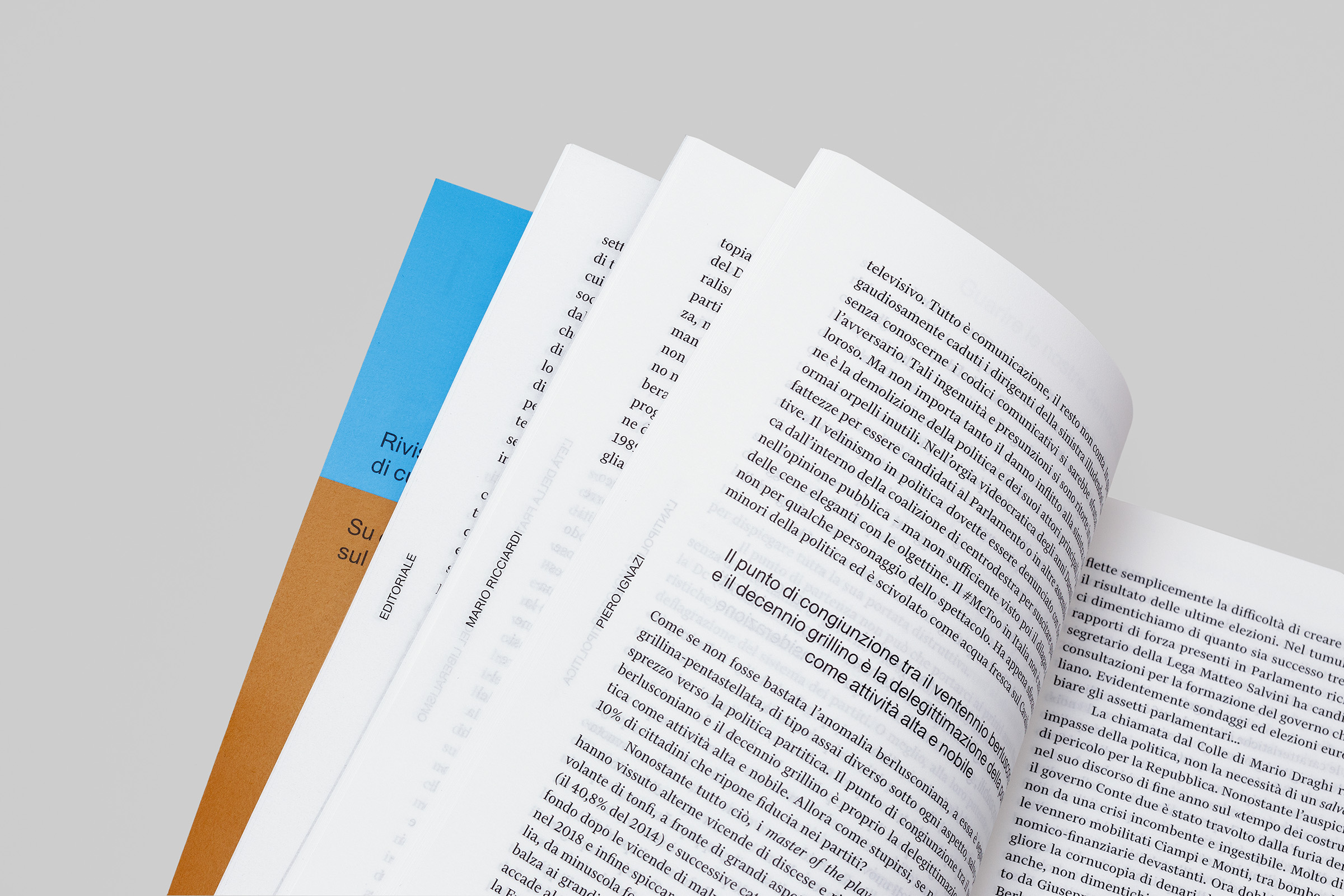 Redesign of the culture and politics magazine il Mulino, founded in 1951. Tomo Tomo studio were inspired by the strength and formal neatness of the magazine covers of the 1960s and 70s. And from there we started to update the magazine. A new simplicity that gives space to the contents and value of the magazine’s texts. This clarity and simplicity of typography is then balanced by a strong chromatic component of the covers, also borrowed from the history of the magazine. The interiors, composed in Financier Text (Klim Type), are focused on legibility for a reading experience that is as pleasant as possible. The new masthead/logo and headlines are instead composed in Union by Radim Peško. The cover artworks are by Cristiana Couceiro. Every issue the two cover colors will be different.