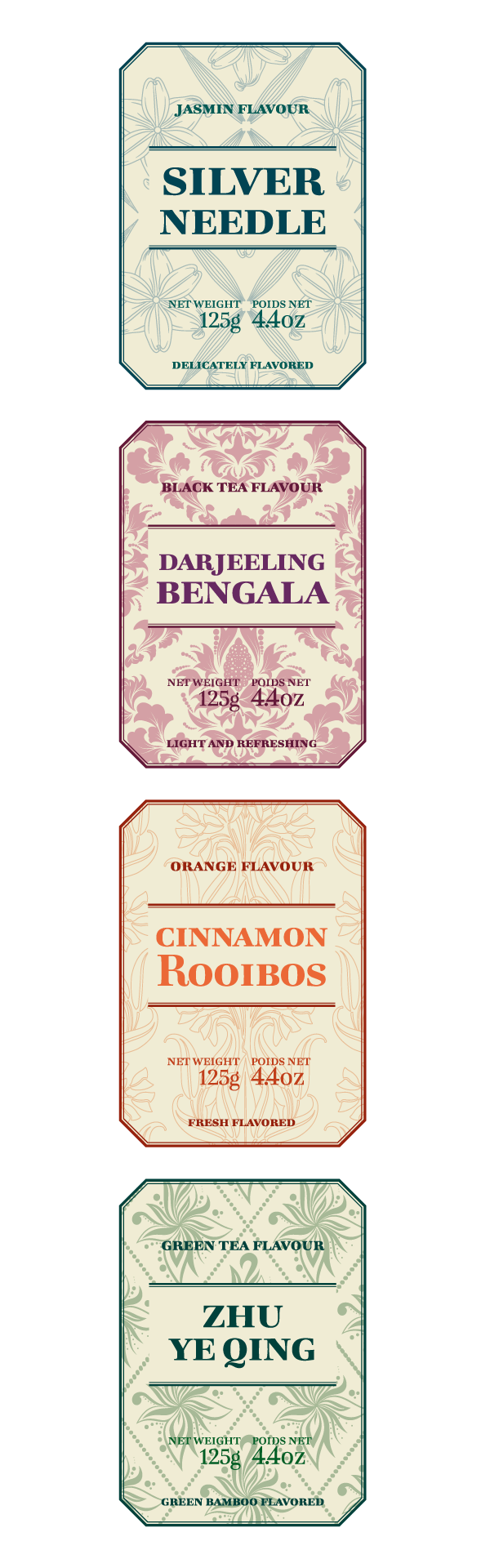 Bohemia tea labels Contributed by Ramiro Espinoza on Jun 11th, 2013. Artwork published in 2013. Source: www.behance.net License: All Rights Reserved. These tea labels were designed by Barcelona-based designer Paula Mastrangelo, featuring both the Display and Text styles of Lavigne, an award-winning typeface family published in 2009 by Retype Foundry. License: All Rights Reserved. License: All Rights Reserved. License: All Rights Reserved. Source: www.behance.net License: All Rights Reserved. Typefaces More about LavigneGet Lavigne Formats Packaging (2518) Topics Food/Beverage (3152) Designers/Agencies Paula Mastrangelo (3) Tagged withtea (56)patterns/textures (367)hexagons (33) Artwork location Spain (1086) Barcelona (452) In SetsSet 1 (fy_younghtings) (172)Designs by Women (Fonts In Use Staff) (3771) Post a comment Name Email – will not be published Website Your response Submit Comment More in Food/Beverage Casa Cardona wines2020Marçal PratsContributed by Marçal Prats Staff Pick THIS PKNc. 2022Randy WuContributed by JAF Platz der Currywurst2009Photo(s) by ed on Flickr. Sponsor More in Packaging Café Du Monde beignet mix and coffee packagingContributed by Nick Sherman b-good visual identity2022Just Design FXMerve GülayContributed by Ivo Gabrowitsch Monin syrupsContributed by Blythwood Cidrerie Miltonc. 2024RethinkDavid RogerMargot Brejon de LavergnéeContributed by F37® More Fonts In Use Maison de la Culture d’Amiens, 2022/23 season2022Julien LelièvreContributed by Production Type Staff Pick Investigating Decentralized Action in Art2025CRSLContributed by CRSL Staff Pick Hardy Smoked Masterpieces2018PacificaContributed by Gareth Hague Staff Pick INCOMMON: performing arts in Italy, 1959–19792017Spa! visual designMonica NanniniPietro GarroneContributed by David Jonathan Ross Staff Pick Minako Yoshida – Light’n Up album art1982Pater SatoToshiContributed by MrRifleman Staff Pick Sol. Mitos, historia y sociedadesc. 2023Ezequiel CafaroContributed by Ezequiel Cafaro Staff Pick The New Republic website2013Dirk BarnettErick A FletesBen AvnyContributed by Chris Purcell Staff Pick Lululemon 20 Years2018PentagramEddie OparaRémi ParingauxContributed by Swiss Typefaces Staff Pick