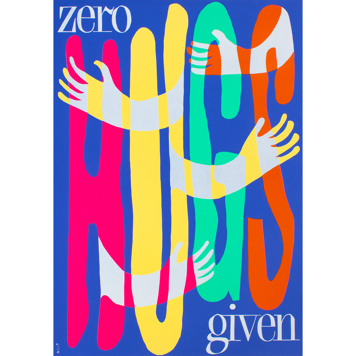 “Zero Hugs Given” poster Contributed by Dafi Kühne on Jun 24th, 2021. Artwork published in 2021. License: All Rights Reserved. Letterpress printed from hand-cut linoleum. From the series “The absurdity of the moment”, a visual diary of letterpress printed posters about the 2020/2021 Covid-19 pandemic. Typefaces More about ES QuarzGet ES Quarz Formats Posters/Flyers (5872) Topics Lifestyle (1454) Designers/Agencies Dafi Kühne (48) Tagged withCovid-19 / coronavirus (97)hugs (2)hands (97)hand gestures (105)lettering (703)hand-cut (27)linocuts (43)lettering derived from typeface (749)reversed type (3462)colorful/multicolored (1087)alternating glyph colors (298)letterpress (267)self-initiated projects (441)all lowercase (905)tight letterspacing (896)social distancing (6)humor (159)early uses (2286)posters (1444) Artwork location Switzerland (1133) Näfels (40) In SetsThe absurdity of the moment (Dafi Kühne) (6)Colossal Combinations (Jay W. Mellor (JWM)) (2128)Favorites (Lauren Rose) (129)bb (Leonardo de la Fuente) (1331) Post a comment Name Email – will not be published Website Your response Submit Comment More in Lifestyle BUTT magazine2001Jop van BennekomContributed by Andreas Kofler Staff Pick Mediteranski San website2024Davor G. ZelicContributed by Alex Slobzheninov Sporer & Kilga at eat&meet2023studiosteinwenderContributed by David Einwaller Sponsor More in Posters/Flyers Canadian Mounties vs. Atomic Invaders movie serial poster1953Contributed by Nick Sherman BELL concert posters2012Contributed by Stephen Coles The Disappeared movie poster2018fertig designContributed by Norman Palm Bardouin Music Takeover at Scandle2020Clara CarpentierContributed by Léon Hugues More Fonts In Use Thalassa (1976) TV magazine logo1976Gérard MarinelliContributed by Pauline Nuñez Staff Pick frieze magazine, 2020 redesign2020David LaneLorenz KlingebielContributed by Maxitype Staff Pick Between Writing & Type exhibition2012Contributed by Indra Kupferschmid Staff Pick Quaderns #2662016TwoPoints.NetContributed by Two Points Staff Pick Old Town Tavern2019Kelly ShieldContributed by XYZ Type Staff Pick Koalicje wody / Coalition of Watersc. 2025Karolina PietrzykTobias WenigContributed by Anna Kovalenko (Kyiv Type Foundry) Staff Pick Electrical Banana2012Norman HathawayContributed by Stephen Coles Staff Pick Het Bos: March, April 20202020Ward HeirweghContributed by Ward Heirwegh Staff Pick