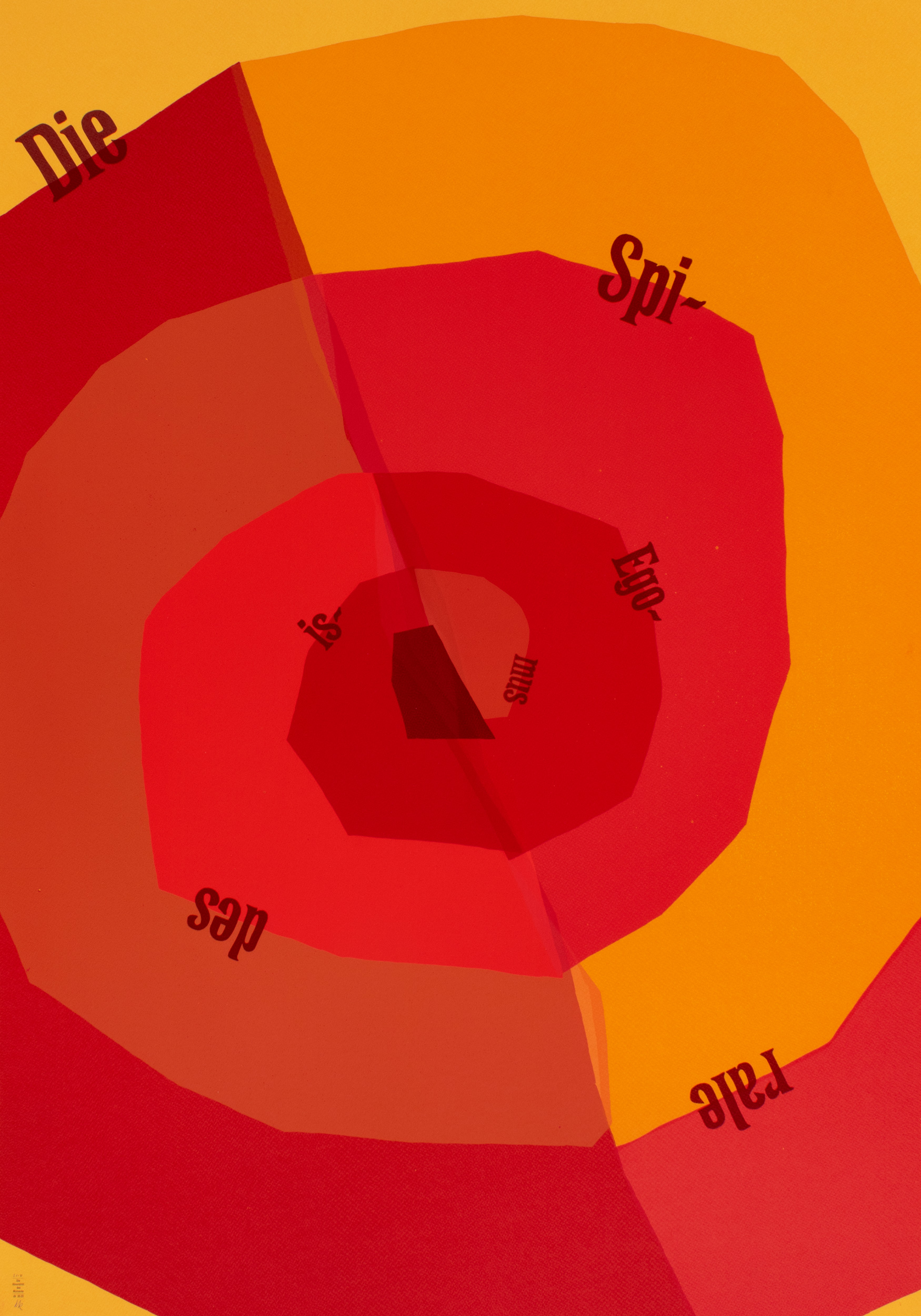 “Die Spirale des Egoismus” poster Contributed by Dafi Kühne on Jun 22nd, 2021. Artwork published in 2021. Photo: Dafi Kühne. License: All Rights Reserved. “The spiral of egoism” – letterpress printed from hand-cut linoleum. From the series “The absurdity of the moment”, a visual diary of letterpress printed posters about the 2020/2021 Covid-19 pandemic. Typefaces More about Etienne schmal Formats Posters/Flyers (5801) Topics Activism (1121) Designers/Agencies Dafi Kühne (47) Tagged withCovid-19 / coronavirus (97)self-initiated projects (436)German (language) (2555)mid-word linebreaks (768)spirals (20)type on a spiral (31)hand-cut (27)linocuts (42)lettering derived from typeface (749)letterpress (265)orange and red (27)posters (1425) Artwork location Switzerland (1127) In SetsThe absurdity of the moment (Dafi Kühne) (6)Serif Goodness (Jay W. Mellor (JWM)) (181)Rising Climate Justice (Jake Pilgrim) (255) Post a comment Name Email – will not be published Website Your response Submit Comment More Etienne schmal in use “Das Strandgespräch” handbillc. 1920A. FrerichsPhoto(s) by altpapiersammler on Flickr. Josep de Ros de Les Olives and the Camponal distilleryc. 1930unknownContributed by Lluís Serra Staff Pick Fiche de blessure de guerre, Mémorial de Verdunc. 1916Photo(s) by Anneke on Flickr. Sponsor More in Activism Half Full Brewing Co2020Freddie HallContributed by Production Type Matrimony Days 2021–222021Studio Le Roy CleeremansEsther Le RoySarah CleeremansContributed by Inès Davodeau Feminism Digital Art Activism Disconnect2019Anja KaiserContributed by Altiplano Typefaces Culture of Resistance2021Maria KoshelevaContributed by Adelina Shaydullina More in Posters/Flyers Johannes Schwartz lecture poster2025Studio Laucke SiebeinContributed by dito-typo ¿Dónde está mi raza?2025Raúl ZeaContributed by Monoespacio Staff Pick The Dunlap Broadside1776John DunlapContributed by Nick Sherman Blog Jeremiah Johnson movie posters and lobby cards1972unknownContributed by Garrison Martin Staff Pick More Fonts In Use New Order – Movement album art1981Peter SavilleContributed by Stephen Coles Staff Pick Semiosphere projectc. 2019Erika MaiSarah KralContributed by Alex Slobzheninov Staff Pick DiaTipo São Paulo 20172017Julio GiacomelliContributed by Julio Giacomelli Staff Pick Antwerp Poster Festival 2020 catalogue, sign and sweatshirt2020ssnnContributed by Dennis Janssens Staff Pick