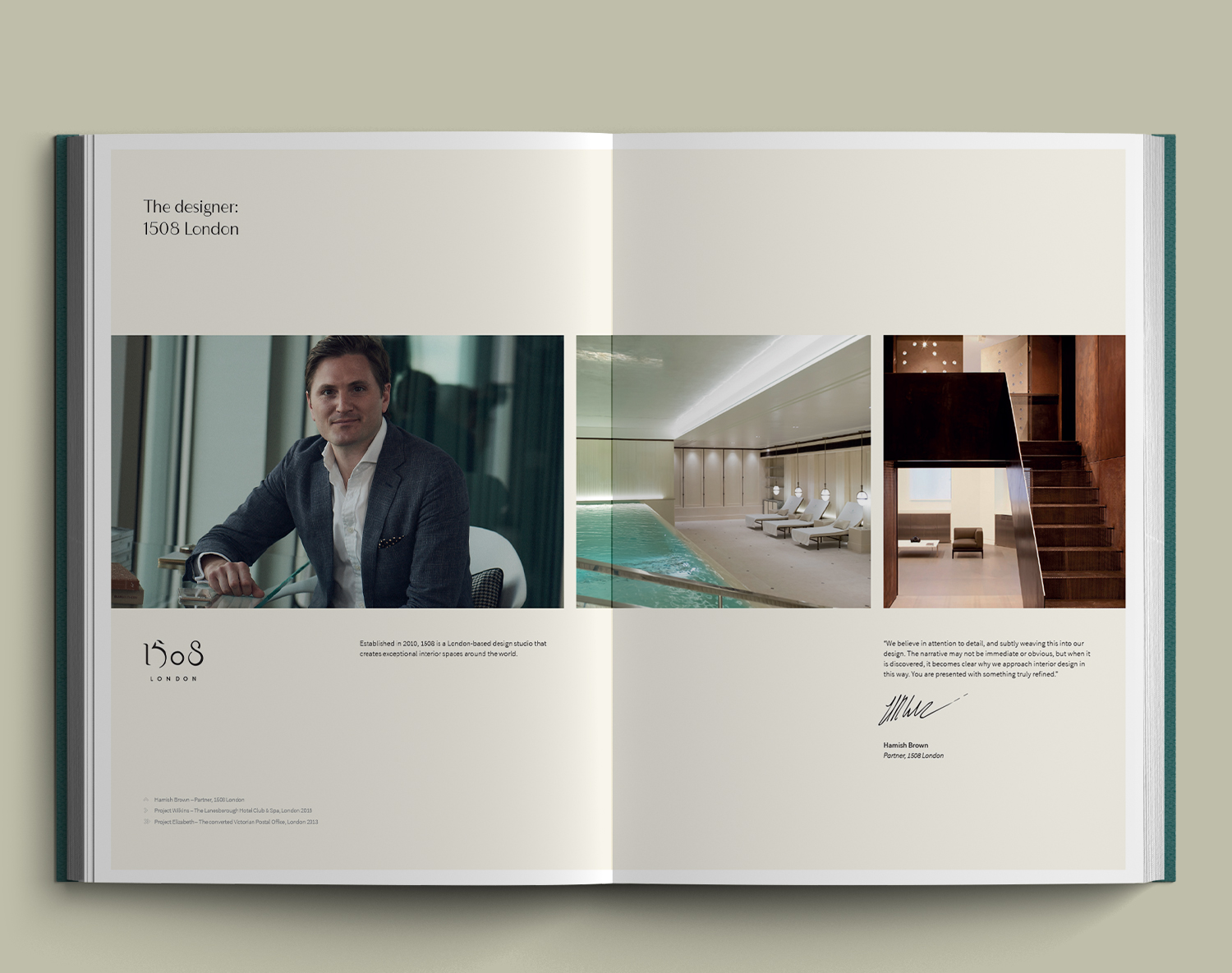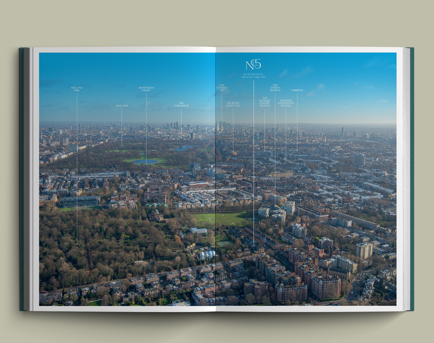F37 Bergman by F37 Foundry in use by designer Martin Parris of Collective Creative. Using F37 Bergman he created a luxurious property identity for No.5 Ilchester Place, showcased in an editorial piece to promote the luxury development in a visual portfolio.