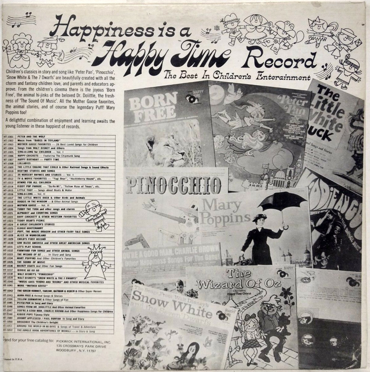 The claim on the back cover reads “Happiness is a Happy Time Record”. Accompanied by a little couple (Peter Pan & Wendy Darling?), it might look like a nod to Kim Casali’s “Love Is …” comic strip, which used Crayonette since day one. There is a catch, though: the comic strip was first published on January 5, 1970. Discogs and the Internet Archive date this album to 1969 – and Happy Time Records were launched years earlier. So … is it the other way around? Or just coincidence?