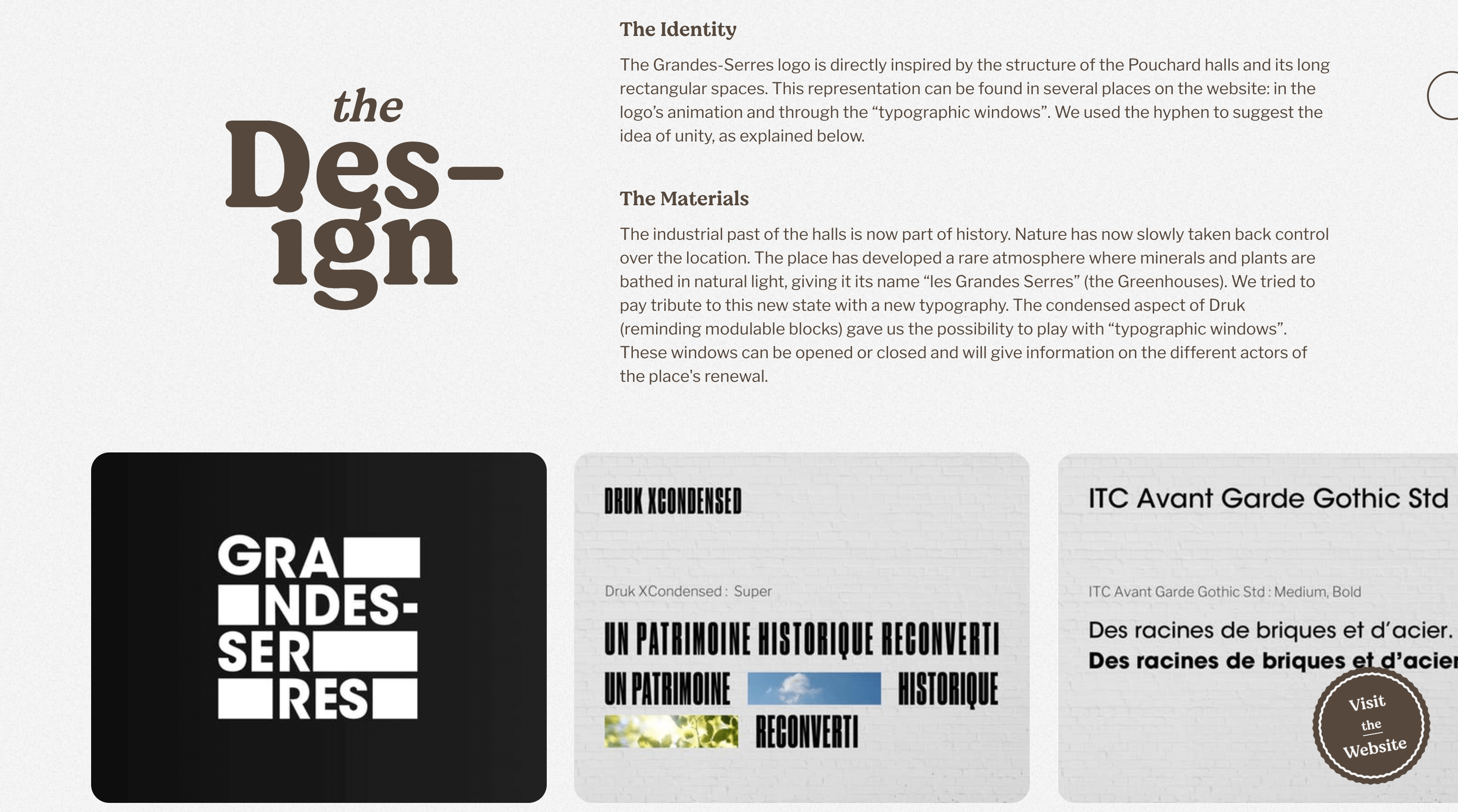 The main typeface used for the website interface and the brand identity is Moranga, a soft serif designed by Sofia Mohr and released with Latinotype in 2019. Various other recent typefaces were used for the illustrated badges of the differents cases studies.